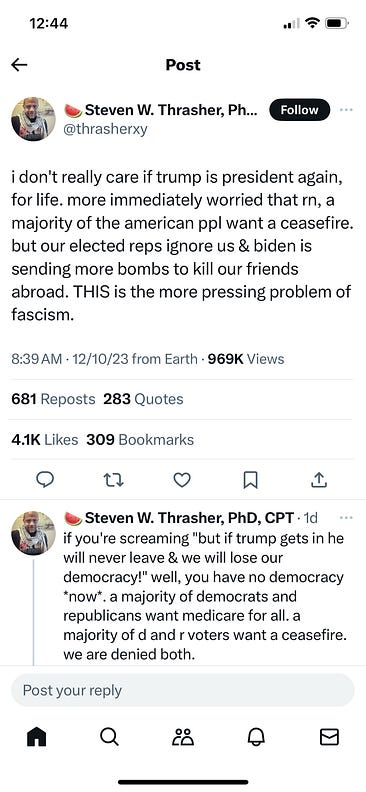 We Americans love democracy. The only people who hate monarchies more than us are kings’ second-born sons. We made dictatorships seem so gross that Russia and Iran still hold elections. The only thing we let anarchists do is puppeteering, and then only outside of economic forums. The only thing that makes Americans feel more superior than democracy are clothes dryers. There’s nothing better than when the president sits in those huge White House armchairs next to a king. It’s so embarrassing. Does everyone in their back-ass country ride horses? Do their brides hang sheets out the window to prove they lost their virginity? Do their mentally ill high schoolers go on sword-fighting sprees? Do they read books? We love democracy. But we don’t care about it all that much. We love democracy like parents loved their children in the 1950s. My lovely wife Cassandra and I come from liberal, Northeastern stock. Our extended families care deeply about the environment. Yet every time they visit us in California, where we tax gasoline heavily to reduce carbon emissions, they shriek about the price per gallon. Which is totally normal. While 69% of people say they are willing to spend more on items that are better for the environment, only 7% actually buy sustainable products. And most of them don’t buy them because of their environmental impact but because they believe they’re good for their personal health. Worse yet, those of us who have electric cars mostly get them to virtue signal about them in our Substack columns. I am writing this while on a flight. I can prove that this was not a necessary flight simply by telling you where it was from: Miami. You can care about lots of things. But you only care passionately about a few. Like many people I know and don’t want to offend by choosing the wrong words, you might care deeply about a woman’s inalienable right to choose what happens to her body and not let men, even ones who are definitely allies, talk any more about this topic than one sentence. In fact, you probably care so much that you might want the Supreme Court to re-establish that right. Not because you examined the Constitutional arguments and agree with them, but because the heretofore mentioned inalienable right is crucial and you don’t care how it gets established. In fact, you might have liked the idea of adding justices to the Supreme Court to secure the right to abortion. Like me, you also might think the re-election of Donald Trump would be dangerous, both because of his undemocratic principles and the fact that when narcissists are close to death their impulse is to take as much of the world down with them as possible. So you might want courts to take him off the ballot or put him in jail. You don’t want this because you have studied the definition of “insurrection” or any of the cases against him. You just want it done. These are not democratic impulses. These are urges for an authority to take an issue away from legislators. A short way to put that is “authoritarianism.” Democracy dies when the frustration that the issues you believe will destroy society – climate change, racism, gun control – don’t go your way, or don’t get there fast enough becomes stronger than your belief in the system. Or as Steven Thrasher, an assistant professor of journalism at Northwestern, put it: ---- No American has marched for democracy. No one has been unfriended on social media because they wished King Charles was really in charge. That’s because democracy is a mushy concept. It’s the water we swim in. It’s three branches, although in some countries just one, and they need 60 instead of 50 because of some rule and there’s a difference between a check and a balance that gets confusing. But abortion I understand. Immigration I get. I mean, I don’t really know anything about those things either, but I could explain them better than how a bill gets out of committee, which I assume is by horse-trading and pig-barreling, and earmarking. But I do know that without democracy, people lose human rights. They also often lose fingernails, the right to grow beards, and, occasionally, the month of January, which the dictator might name after himself. I have no doubt most of us would live a fine life in the mix of dictatorship and democracy that is becoming popular in countries such as Hungary, India and now, possibly, the Netherlands. But not all of us. And not for long. I was at lunch with a friend, talking about how unimpressive we had become in middle age. The dadding. The job we’ve been doing for decades. The mortgage payments, the marriage maintenance, the discussions about what new shows we were watching. And he told me about the Five Good Emperors. This was the first time we both lit up. Because we were men talking about the Roman Empire. These were rulers who came into a peaceful, prosperous Roman empire and didn’t deal with any major wars or famines or moms wondering what the fuck all these men were doing to their sons. These guys maintained. They kept it going. And that, my friend argued, is hard, grinding work. Holding off entropy is heroic. And it was once appreciated enough to get the title of Five Good Emperors. Joe Biden is a Middle Emperor. All we can ask right now is to keep our democracy going for another four years. Despite all the other issues that keep us up at night, the ones whose champions are our heroes, keeping democracy going is the most important job there is. Because what we love is more important than what we care about. Thank you for paying to read my column. Wait: This is for the people who didn’t pay? Then I owe you nothing. You are the ones contributing to the end of my career. If you want to pay an exorbitant amount of money to get one extra post a month – which often won’t even be that good – upgrade to a paid subscription here: |