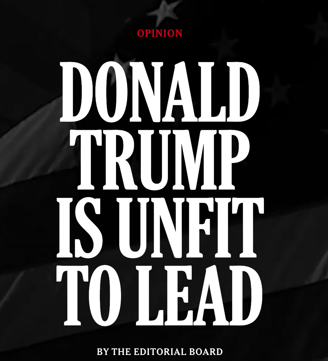 This morning, the New York Times ran a crucial editorial piece. In the middle of the controversy over whether Joe Biden should be the Democratic nominee for the presidency, they returned the conversation to the most important issue we face: whether Donald Trump is fit to be president. The Times Editorial Board resoundingly concluded that the answer is no. That doesn’t come as a surprise to any of us here at Civil Discourse. But sometimes, what’s obvious, what’s plain, can get lost in an onrush of bright and shiny things. I fear we are in one of those moments. Although I’ve had some concerns about what I’ve read, and about what I haven’t, in the Times recently, this piece is something we should all be reading. The piece is headlined: “Donald Trump is unfit to lead.” It starts with these toplines: