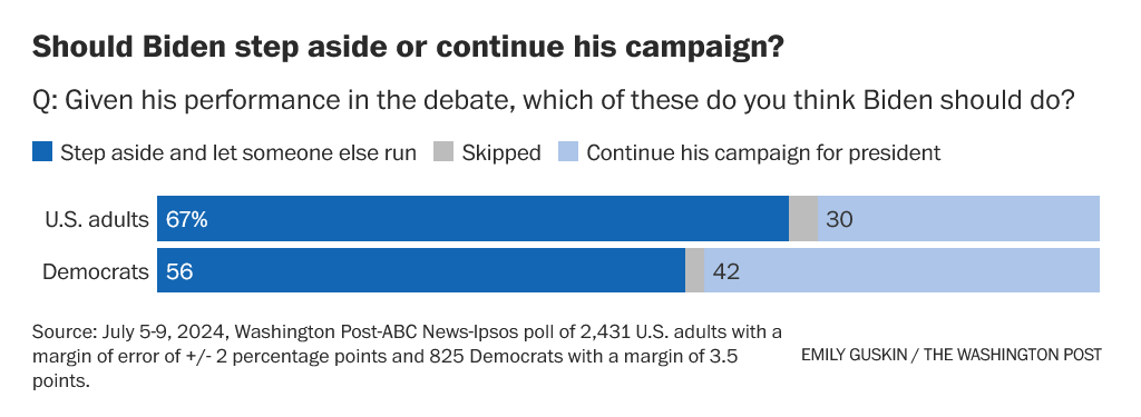 Not only I am optimistic we can win this thing based on current data and my assessment of the landscape but because of the “margin of effort” all of you are putting in. As a fellow citizen I remain deeply inspired by your commitment, love of country, grit and willingness to just put your head down and do the work required for us to win. But our party today is not united as we need it to be. There remains deep concern about the President’s ability to go out and win the election given his struggles of late. This concern is not just being expressed by some party leaders (who by the way know how to win elections in tough places) but based on current polling is shared by tens of millions of Democrats themselves. As I said in my video to you a few days ago (above), I am optimistic we can win this November; but if the President is going to win he is going to need to do far more to assuage the legitimate doubts many Democrats have about his candidacy, and all of us will have to come together soon - for a divided, fractious Democratic Party will lose the 2024 election. My ongoing advice to this community is to approach these coming days with respect - respect of the President, our nominee; respect of party leaders who are working to ensure that we can win the election; and respect of one another who today are not all on the same page. For those of you backing the President telling your fellow Democrats who continue to have doubts to stop it and get in line is counter-productive, insulting and corrosive. For those of you wanting the President to step aside recognize that the most likely scenario is that our ticket remains Biden-Harris and attacking him wounds him at a time we need to be building him and the Vice-President up. This current moment is not easy for us given the stakes but as I asked in my video think of yourself here as a leader, not just a citizen. Lead the party forward, show respect of views different than yours and work to bring us together not push us apart. Do the hard thing here not the easy thing. And the hard thing is to resist fighting with fellow Dems, publicly, right now, and keep putting our heads down and working; and commit to bring us all together as we head into our Convention in a few weeks. The only way we win is if we stay together. I want to be very clear at what I am saying here. The doubts about the President’s capacity to lead us now is a serious matter. In the Washington Post poll released last week which had the race at 46-46, 56% of Democrats wanted the President to step aside for another candidate. This data is consistent with data from other polls in the last few weeks. If the President cannot get this number down, way down, I think it will be very difficult for us to win the election this November. He is the President, and the leader of our Party. It is his responsibility to bring us together, to demonstrate that he can lead us successfully against this fascist threat. Perhaps his media appearances over the past few weeks, the ongoing encouraging economic news, his successful leadership of the NATO Summit, the shock of the ugliness of the GOP Convention and his confident and strong leadership in the aftermath of an assassination attempt of a former President has already started assuaging these concerns. But we are not where we want to be right now, have a lot of hard work ahead of us and we are not the “my way or the highway” party. That’s them. We are the bring everyone together, listen to each other respectfully, expand our coalition and go out kick MAGA’s ass party. It is why I hope this weekend the President and his team to do one more final assessment of the political landscape given the tumult of the past few weeks, review the latest data, talk one more time to party leaders, and perhaps most importantly, do one more final assessment of whether an 81 year old man who has been struggling a bit can, in the next four months, be both the President of the United States in a very challenging time and a successful candidate for President in a race we are not winning right now. If the answer is yes I will be all in and work as I have, with all of you, to go win this thing for our democracy, our freedoms and our future. And if the President chooses to pass the baton I will be all in and work as I have, with all of you, to go win this thing for our democracy, our freedoms and our future. I am proud of my President, proud of my party, and oh so proud to be in this fight with all of you. Let’s keep working hard everyone and commit to bring our party back together and go out defeat the fascists one more time. Voters in Europe, France and the UK just did their job. It’s our turn now. Making July Count/We Cannot Let Up/Do More and Worry Less - Friends, we just did a remarkable job together here making June count. In five weeks from late May to June 30th we raised over $1m for our candidates and party committees. Many of you have been out there hustling for candidates, writing postcards, canvassing, calling and texting. We launched our Winning the House campaign which brought in more $500,000 for our 12 Hopium-endorsed candidates with the best opportunity to flip seats and help us take back the House. We added the blue dot in Nebraska to our “checkmate” state strategy, one designed to get us to 270 electoral college votes and win the election. We raised hundreds of thousands of dollars for Biden-Harris, including more than $100,000 in the days after the debate. When called once again the Hopium community answered. That’s why we’ve launched a new campaign to “Make July Count” with new July 31st fundraising goals. We cannot let up now, not for a moment. We are deep into the 2024 election and while it is summer, and we are not all on same page today, we cannot stop working to make the election everything we want it to be. So please do something this week to support this new campaign, and be on the look out for many more interviews of ou