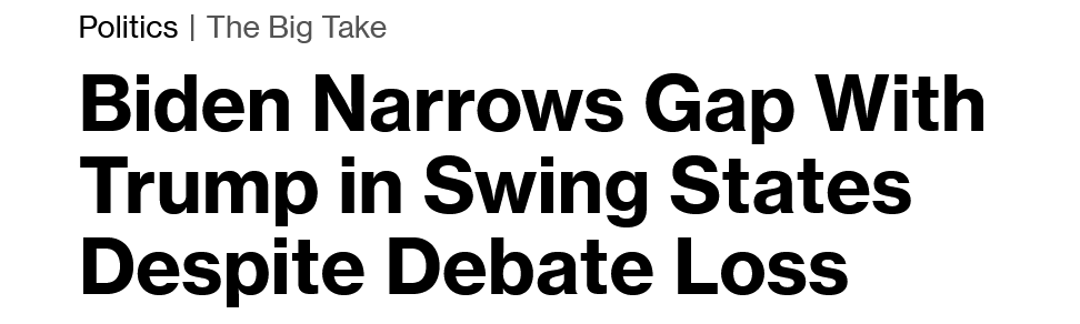 The overwhelming majority of polls released this week show the race essentially tied, 3 have Biden leads, and the 538 forecast this morning has Biden at 270 and winning the election. The last battleground state poll had Biden gaining 2, ahead in 2 of the 7 states and within margin of error in several more - neither candidate was at 270. Kamala Harris is showing a remarkable degree strength in recent polling, something that we just weren’t sure about a few weeks ago. So commentators need to stop red waving 2024 - today this is a very close election, one Democrats can clearly win. A reminder of what the headline of the new Bloomberg/Morning Consult poll was on Sunday: More questions need to be asked of the Republicans today why all of a sudden Trump’s polling lead appears to have disappeared. Perhaps keeping him off the trail for two weeks was a huge error, not some super savvy play. Some top line points from my talk last night: