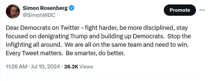 So watch my talk, review this data, be loud and proud about our President and our party, and use these links below to do more today - much much more - and worry and fight much much less. Let’s go win this thing, together. Making July Count/We Cannot Let Up - Friends, we just did a remarkable job together here making June count. In five weeks from late May to June 30th we raised over $1m for our candidates and party committees. Many of you have been out there hustling for candidates, writing postcards, canvassing, calling and texting. We launched our Winning the House campaign which brought in more $500,000 for our 12 Hopium-endorsed candidates with the best opportunity to flip seats and help us take back the House. We added the blue dot in Nebraska to our “checkmate” state strategy, one designed to get us to 270 electoral college votes and win the election. We raised hundreds of thousands of dollars for Biden-Harris, including more than $100,000 in the days after the debate. When called once again the Hopium community answered. And today I am calling again by launching a new “Make July Count” campaign, with new goals for July 31st, below. We cannot let up now, not for a moment. We are deep into the 2024 election and while it is summer, and we are not all on same page today, we cannot stop working to make the election everything we want it to be. So please do something this week to support this new campaign, and be on the look out for many more interviews of our endorsed House candidates in the coming days. Trying to get the remaining eight done by early August. We can do this people!