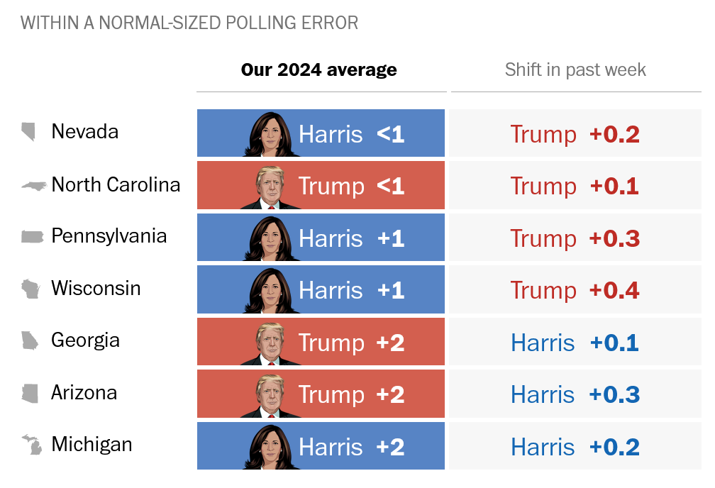 There is one primary story today - the Vice President’s historic event at the Ellipse last night. Please watch this video, watch again and share. The crowds were enormous, the energy, excitement incredible. Her speech was powerful, optimistic, necessary. “Not just get by, but get ahead.” I was lucky enough to be there, and it was glorious. My friends - we are closing strong, together. Today’s campaign schedule. Note the love North Carolina is getting today! Vice President Harris will host Get Out the Vote rallies in Raleigh, North Carolina and Harrisburg, Pennsylvania, before heading to Madison, Wisconsin for a “When We Vote We Win” rally and concert. Musical performances will include artists Gracie Abrams, Mumford & Sons, Remi Wolf, and The National’s Matt Berninger and Aaron Dessner. Governor Tim Walz will join Good Morning America and CBS Mornings. In the afternoon, Governor Walz will participate in a series of political events in Charlotte and Greensboro, North Carolina, to encourage North Carolinians to vote early for Vice President Harris and Democrats up and down the ballot. In the evening, Governor Walz will deliver remarks at a Harris-Walz campaign event in Asheville, North Carolina. Second Gentleman Emhoff will deliver remarks, rallying students with Congresswoman Alexandria Ocasio-Cortez at the University of Nevada, Las Vegas and later at a volunteer phone bank in North Las Vegas. Mrs. Walz will appear on the CBS daytime talk show The Talk at 2 p.m. ET. She will discuss her experiences crisscrossing the country campaigning for the Harris-Walz ticket, her personal fertility journey, and what’s at stake for reproductive freedom in this election. The 2024 Election - We Are Winning The Election But Have Not Won It Yet - Here is Harris-Walz Campaign Chair Jen O’Malley Dillon’s week out state of the race update. It is important that everyone watch this and yes do more and worry less in the final six days: Here’s my rough calculation of national polls released since Monday, October 14th broken down by independent polls and those affiliated with right-wing and Republican organizations.