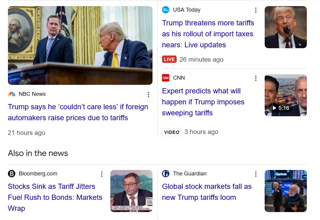 Trump’s Tariff Madness - Here is how Politico is playing it this morning in their new article, World braces for Trump’s ‘Liberation Day’