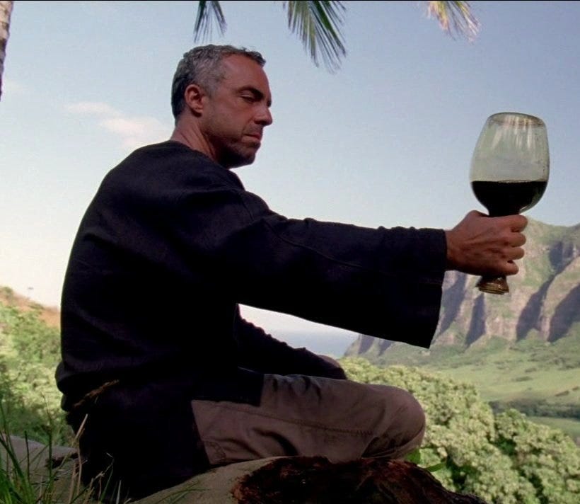 I can see where Damon is coming from. Knowing about wine is not likable. It’s annoying, it’s elitist, and it’s intimidating. Knowing about beer, on the other hand, is only annoying. It seems like a way to act superior about something purely classist, the way you once showed off your boarding school education by quoting things in Latin or saying that you once had oral sex with another boy. His deep distrust of the wine world is why Jeremy Irons plays a guy who destroys New York City in Watchmen and lives like this: And why a plot line in Lost is about how the island is a cork preventing “the darkness” in the wine bottle from spreading. And why there’s a scene in The Leftovers where all these people are drinking water with dinner. Even that baby is wondering why no one is touching the one wine glass: And it’s why this is the only bottle I know for certain that Damon owns: I asked Damon, who both drinks wine and knows an extraordinary amount of detail about everything, what his issue is about learning something from a sommelier. He told me that sommeliers are evil because their job is to trick customers into spending a lot of money. This seemed silly to me. Everyone’s job in a capitalist society is to trick customers into spending a lot of money. At least with sommeliers, you can give them a budget and they’ll abide by it, unlike real estate agents, car salespeople, or television showrunners. So I asked Matthew Brodbine, the sommelier who is beverage director at the Santa Monica restaurants Seline and Pasjoli, to rebut Damon’s accusations.
