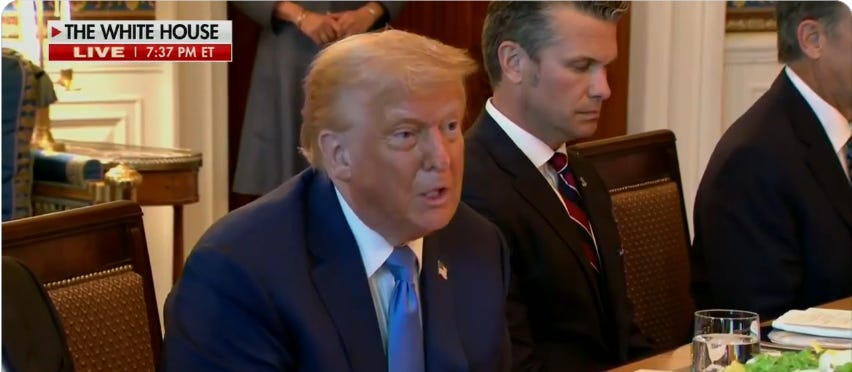 It is likely that Trump will be emboldened now. In his mind the Iran bombing was a big success and showed the world THE POWER he holds; he is popular and loved BY THE PEOPLE; he has deployed THE MARINES to America’s streets; his passage of the big ugly makes him STRONG and a WINNER; and thus countries and the American people should SUBMIT TO HIS POWER, and bend the knee. But as we’ve discussed here the leaders of the world see him as a clown and a fool and aren’t bending the knee; we are not submitting but protesting, fighting, winning in court again and again; he is not popular and successful, but unpopular and failing. This tension between his imagined Presidency and the real one those outside the MAGA bubble are experiencing is growing; and those in positions of leadership need to be aggressive about pointing our what is happening now as we enter what could be a new and more dangerous phase - the idle hands are the devil’s workshop phase - of Trump’s second term. Governor Newsom did a very good job at this yesterday, using a powerful phrase, “Trump’s polluted heart.” Watch: Emboldened, diminished, mad……look at Trump’s insane burnt orange color last night in his globally televised meeting with Bibi. Clown, or US President? For us, unfortunately, it’s both. To end on a more upbeat note, enjoy this new video from the Mamdani campaign. Whatever you think of this new player on the scene I think we can all agree that he has become a pioneer in his use of media, and that we all can learn from him and his able team: Now, Let’s Get To WorkSupport Hopium’s Priority Candidates - Friends, you all rallied these last few days. We hit our $25,000 June 30th goal for our newly endorsed candidates Rep. Mikie Sherrill and Senator Jon Ossoff - thank you! Our revised fundraising goals are for Labor Day, remarkably, only two months away, with the November elections now only four months away. We can do this people!!!!!!!!!!!!!!!!!