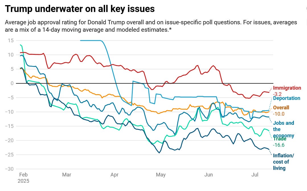 The Passage Of The Big Ugly Has Given Us A Big Opportunity. We Need To Seize It (New Video & Political Analysis)Our "What's Next" Series Continues Tomorrow at 215pm ET With David Leopold On Trump's Immigration Escalation. Join us!Morning all. Remarkably I start the day a bit more optimistic than I’ve been in some time. I explain why in my new video, recording and transcript, above. Let me try to summarize where my head is at right now here….. I think Trump and the Republicans have gone too far, and are making consequential mistakes. They have overplayed a weak hand. The public is not buying what they are selling; their agenda is already doing real harm to the country and the American people; things will get worse; we have 16 months now to relentlessly, loudly, tell this story to the American people; and we need to go offense, operate from strength, and go win the big argument with MAGA, mitigate the damage they are doing and regain as much as power as we possibly can. In these first six terrible months of Trump they have told us who they are and what they want - they want our country to be poorer, weaker, less safe, less healthy and less free. The agenda is clear. There is no American greatness or a better tomorrow. Their way is a diminished country, with fewer opportunities for our people, an end to our democracy, and a nation less able to chart our course in a competitive world. They want for more them and less for all of us. They cannot run away from who they are and what they are doing. There isn’t any way to put lipstick on this Trumpian pig. And unlike 2024 we cannot shirk from our responsibility to tell this part of the story. For the first step in defeating Trumpism is to make sure every voter available to us understands exactly who they are and what they mean for our nation’s future. The passage of the big ugly gives us an opportunity to go tell this bigger story about this rancid agenda of sabotage, plunder and betrayal. We are no longer limited in our comms and story telling to the elements of the big ugly. We must now in fact integrate the elements of the big ugly into their broader agenda and attack it on all fronts. They have betrayed us and we can and must find a better way, together. The tragedy in Texas has started a national debate about their “more for me, less for all of you” agenda. The return of measles has given us an opportunity to talk about their assault on our health care. Trump’s ongoing tariff fiasco allows us to talk about his core betrayal of working people by raising prices not lowering them. His attempt to create a secret police gives us an opportunity to talk about his authoritarian fantasies and abandonment of the Constitutional order here in American. The upcoming debate over Congress’ Fiscal Year 2026 budget gives us an extended opportunity to explain the harms of their agenda to the American people. Democrats in state and localities across the country can start to immediately organize town halls, hearings and other community conversations to talk to their constituents about what the big ugly and the broader GOP agenda means for them (and we need to help them do this). For it is no longer notional or a promise. It is here. And people are dying. The economy is slowing. Prices are rising. Our debt is exploding. Masked men are disappearing people into foreign and domestic gulags. Measles has returned. The world is laughing at us. They’ve given themselves huge tax cuts while levying one of the largest tax increases in history on working people. Our leader is a fucking painted clown, a joke, an impulsive and out of control fool, being enabled by unprecedented cowardice in what was once the Party of Lincoln and Reagan. We have to go on offense now and tell our story because it is clear the country is not buying what they are selling - thankfully. As I’ve been writing over these past few weeks all of his attempts to get his flagging poll numbers up have failed - the immigration escalation, the sad birthday parade, the bombing of Iran, the passage of the big ugly - nothing has moved the needle. He remains remarkably unpopular, and the groups who swung to him late and gave him the election have wandered from him. Their inability to make their big ugly popular, and their continued inability to get his poll numbers up should give us some confidence that we can compete and win against them over the next 16 months even with with their ongoing information superiority. There is just a limit to the bullshit, and a majority of the country just isn’t playing along. Finally, as we mount this next phase of our ferocious opposition we must better understand how he plays the game. Trump sees politics as a struggle between strong and weak, winning and losing, success and failure. We must contest this space and this understanding the way we contest “issues” like health care, tariffs and immigration. We must make him, together, weak, a loser, a failure, a big blubbery baby man, anything, anything but a strong man. We must deny him this positioning, and in the process we must become strong, the winners, successful. We must be strong, not weak. Winners not losers. Successful, not failures. To defeat him we must contest, aggressively, the greatest source of his strength - this absurd construct of him as a powerful, strong, effective leader fighting with all he’s got for the country. We must pull the curtain back from the Wizard; show the Emperor has no clothes; we must, simply, break the spell. Lots of this make up FFS! This is a photo of a clown, not a President. In the coming days I’ll be taking my emerging understanding of the moment into a new set of concrete actions we can undertake. I want to be clear - what comes next is going to be hard. Victory is not assured. ICE has become a serious threat to our liberties and all of us. But I think Trump and the Rs have overplayed a weak hand; they’ve gone too far; the country is rejecting where they a