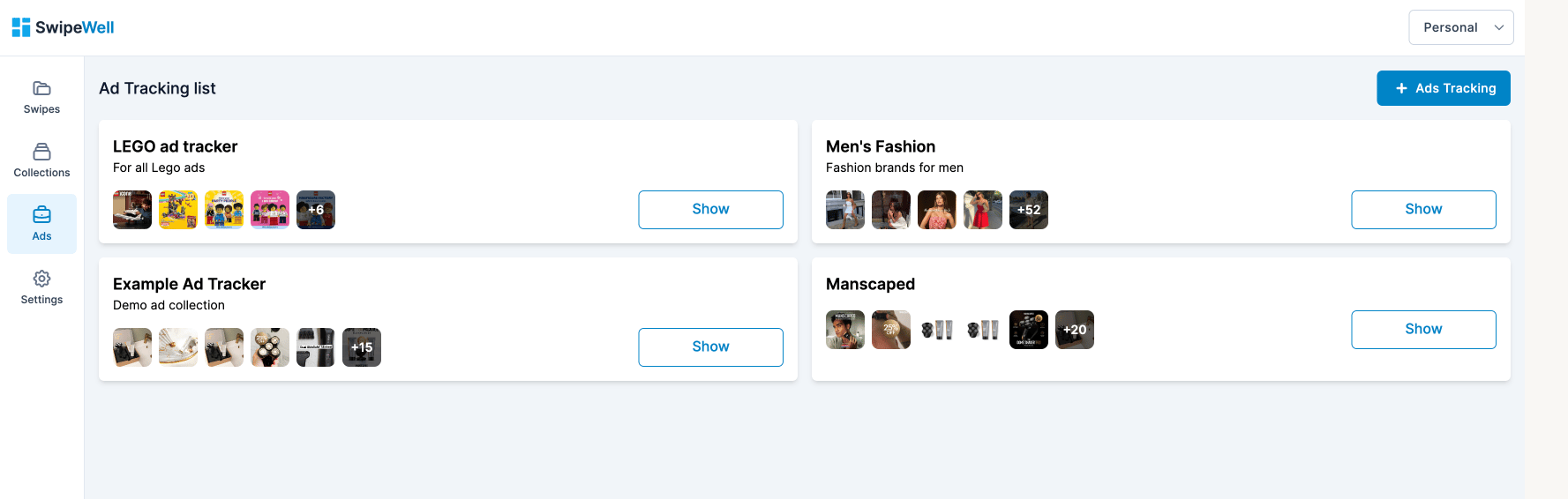 | Ever see a great ad and wish you could save every single one from that brand? Now you can! Introducing the SwipeWell Ad Tracker, your new secret weapon for tracking and studying the best ads out there. Here's how it works: