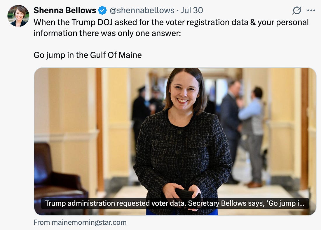 Your paid subscriptions help me devote the time and resources necessary to the newsletter. If you find value in the clarity and context Civil Discourse brings, I hope you’ll consider becoming a paid subscriber and tell your friends about it, too. On August 6, 1965, President Lyndon B. Johnson signed the Voting Rights Act, a landmark piece of civil rights legislation that prohibited racial discrimination in voting. We commemorate its 60th anniversary in a moment when it has been and continues to be under a sustained attack, with the president, Republican members of Congress and other elected officials, and even the Supreme Court denigrating the need for ongoing protection for Black and other minority voters. The VRA is pretty much at death’s door. Go Jump in the Gulf of Maine The Trump administration is skipping even the pretense of a VRA anniversary celebration, instead using email, letters, and phone calls to demand voter data and information about how elections are conducted from the states. It’s reminiscent of 2016 and Trump’s “Election Protection Commission,” formed after the election to search for voter fraud. The Commission didn’t find any, and when it came to light that hardcore right wingers on it, like Kansas Secretary of State Kris Kobach, were trying to use the exercise to collect data on voters that could be used to target them with disinformation and make it more difficult for them to vote, the Commission was forced to close down. Unlike 2016, when Republicans still had some shame, now the White House simply demands the information, with no apologies offered. Maine’s Secretary of State, Shenna Bellows, had an answer for them, though. “Go jump in the Gulf of Maine.” Bellows is the kind of Secretary of State who does whatever it takes to make sure all eligible citizens can vote. She’s neither apologetic nor political about it. The most important job any Secretary of State has is running the state’s elections, and although many of them are elected on a partisan basis, if they do the job right, they set any party allegiance aside and work to ensure all eligible citizens are able to register, vote, and have their vote counted. That work is made easier by the Voting Rights Act. Or at least it used to be. Section 5 of the VRA When it was enacted, the big gun for protecting the right to vote was found in Section 5 of the act. It created a “coverage formula” that applied to states and political subdivisions with a history of significant discrimination against Black voters in the 1960s and 1970s. The kinds of discrimination the act was designed to put an end to included Mississippi’s notorious soap-bubble test, which required Black voters to correctly guess the number of bubbles in a bar of soap in order to be permitted to vote, under the guise of an intelligence test. The act prohibited these discriminatory measures and required jurisdictions that had used them or other forms of discrimination to submit any new changes in their voting procedures—closing or moving polling places, requirements for more and more limited forms of identification, reduction in early voting days, purges to voter rolls—to either the Justice Department or the district court in the District of Columbia for approval before they enacted them. That process was called preclearance. “Was” is the operative word here. In April of 2010, Shelby County, Alabama, sued then-Attorney General Eric Holder in federal court in the District of Columbia, arguing parts of the Voting Rights Act were unconstitutional. The lower courts disagreed. Then came Chief Justice John Roberts’ majority opinion for a Court that split on party lines, gutting Section 5. Roberts held that the “blight of racial discrimination in voting” that had “infected the electoral process in parts of our country for nearly a century,” and which the act was designed to address, was substantially a thing of the past by 2013. The Court ruled that the changed circumstances meant that the criteria used to decide which states had to submit to preclearance were unconstitutional, in effect gutting Section 5. Congress could have acted and fixed this. Many people expected them to. They could have gathered 2013 data and used it to support new criteria for preclearance. But Republicans, who had played a role in renewing the bill repeatedly since 1965, refused. All that was left was Ruth Bader Ginsburg’s prescient dissent, which offered that “Throwing out preclearance when it has worked and is continuing to work to stop discriminatory changes is like throwing away your umbrella in a rainstorm because you are not getting wet.” Since Shelby County was decided, states have been free to pass and implement laws that do everything from reducing the number of polling places to making it a crime to hand a bottle of water to someone in line to vote. Lawyers can still challenge these laws after the fact, but there is no more preclearance requirement to keep the discriminatory ones from going into effect in the first place. Section 2 of the VRA Since Shelby County, many of the cases challenging new laws and practices after they go into effect have been brought under Section 2 of the act. But that section is being slowly corroded, and as we approach the act’s anniversary, the Supreme Court seems to have found its vehicle for gutting Section 2, having already done so to Section 5. First, a little background about Section 2: In 2021, Justice Alito wrote the majority opinion for the Court in Brnovich v. DNC. Alito wrote that he was not creating a test for all cases brought under Section 2, just announcing “certain guideposts” to inform them. We might as well have been back to the soap bubbles test; semantics aside, Alito made it much harder for plaintiffs alleging discrimination in electoral practices to prevail. The Court held that all that was necessary was for the political process to be “equally open,” to participation 
