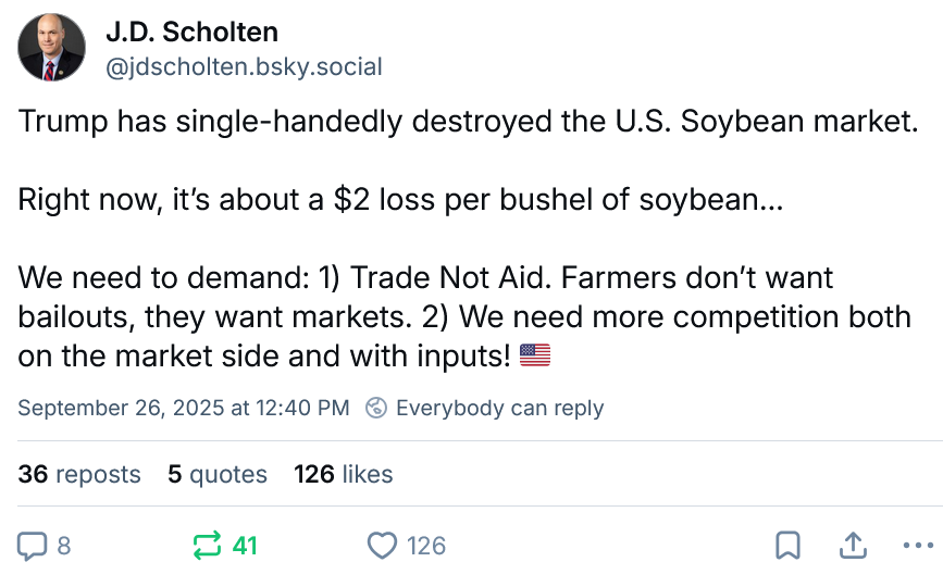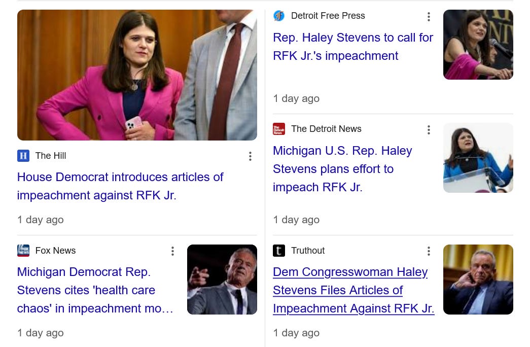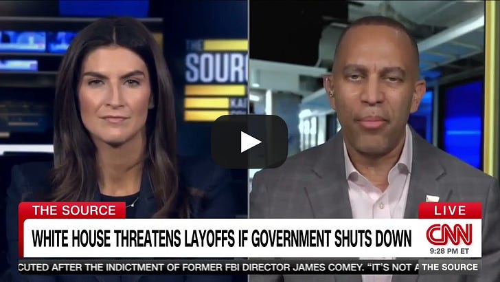 Leader Jeffries has been everywhere these past few days, on all the major networks, big podcasts, fighting as hard as he can. He’s clearly found a higher gear this week. Here’s his appearance last night on Kaitlin Collins’ show on CNN. It’s a great window into where Dems are now heading into the big fight next week: Gavin Newson launched a great new ad for Yes on 50 that ties together our big themes - rising prices, assault on health care, threats to democracy, his rejection by the American people, weakness, betrayal. A more comprehensive narrative and indictment like this is where I think our leaders to get themselves to in the weeks ahead. Watch: Rep. Mikie Sherrill spoke out forcefully yesterday against the Trump regime’s horrible, illegal release of her entire unredacted military file. Here she is on MSNBC: Even hard core MAGAs are going on Fox News and calling the case against James Comey ridiculous made up bullshit: The Washington Post has a story this morning about how Trump’s terrible new tariffs announced Thursday are going to push inflation and prices even higher: Trump’s assault on farm country is getting more and more attention. Dems need to be for trade and rolling back the tariffs, not bailouts. Congresswoman Haley Stevens has announced she is drafting articles of Impeachment against Robert Kennedy Let’s call our Senators and Reps this week and ask them to co-sponsor this initiative when it rolls out. Here’s the initial press release from Rep. Stevens’ office: