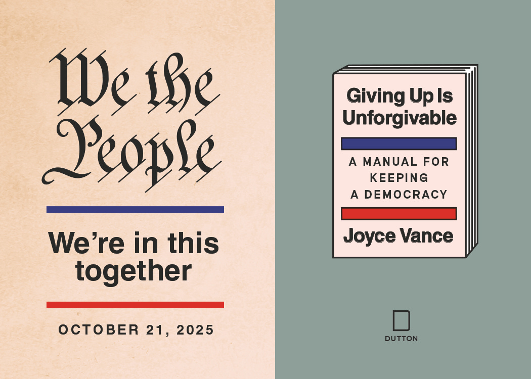 And now, a word from my publisher: This is fun and unexpected! They’ve created enamel pins as a promotion for my book, and once you’ve pre-ordered it (you can do that here if you haven’t already), you can get one! All you need to do is head over to the Penguin Random House website to request yours. I love how the design turned out and can’t wait to start wearing mine. And here’s the legal stuff I have to include: US Residents, 18+. Ends October 20, 2025. While supplies last. See terms on the official website. In other words, head over there now and grab yours while they’re available! I’m assured there are plenty for those of you who preordered, and I’m hoping you’ll send me pictures of yourselves wearing them once they start to arrive! Thanks again for your support and for all of the love I received while working on the book. I could not have done it without you, but, having just reread it in its entirety for the audio recording, I’m glad I did. I hope it will make a difference. I still believe we have the power to do that. We’re in this together, Joyce You're currently a free subscriber to Civil Discourse with Joyce Vance . For the full experience, upgrade your subscription. |
