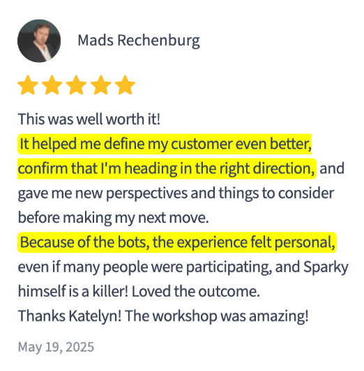 - Get lifetime access to all materials - you'll get the workshop replay, all the AI tools, your workbook, and access to a self-paced course version so you can use my proven 9-step process to design new scalable offers whenever you want