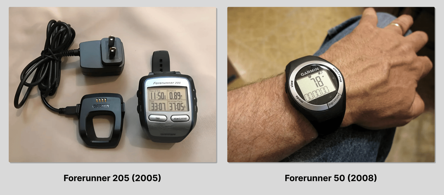 Garmin had already launched the Forerunner five years prior in 2003, which was a wrist-worn GPS primarily for runners. It was a little clunky (and niche) but it had a strong cult following and continued to evolve through several iterations.