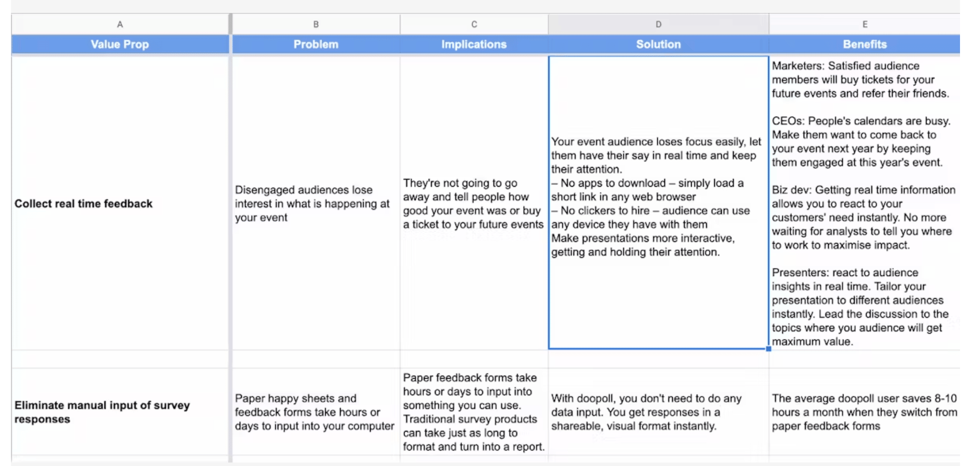 Doopoll's well-defined value props after working with their coach via the Growth Program's VIP subscription.