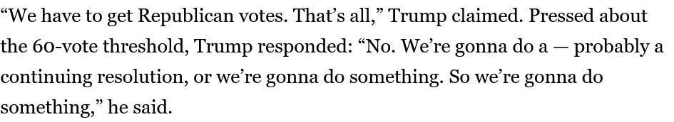 When our ailing and diminished leader was asked yesterday about the coming budget negotiations he clearly did not understand that it takes 60 votes to pass a budget in the US Senate. Yet another 25th Amendment moment: There are two parts to our winning the fall strategy - winning these fall elections, and getting as much of our agenda enacted as possible. Now….. Let’s Get To Work Everyone!Support Our November, 2025 Candidates