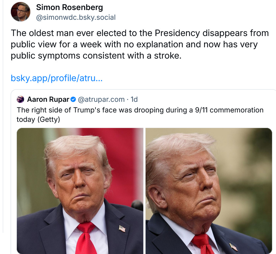 In the crush of the terrible events this week we cannot let the clear decline in our ailing leader’s health get flushed down the memory hole: Nor can we let this one go either: Nor should we miss that the U of Michigan Consumer Sentiment Survey hit its lowest level in the past 50 years on Friday: For additional pick me ups this weekend we have a new, inspiring conversation with Senator Jon Ossoff; Senator Ruben Gallego talked to us about Trump’s escalating assault the Latino community; Mikie Sherrill updated us on her promising campaign for governor in New Jersey; Senator Angela Alsobrooks spoke to us about standing up for science and public health and the urgent need to fire Robert Kennedy; and Rep. Dan Goldman gave us a comprehensive update on what he is seeing from the House side. Lots of wonderful insights in these talks. Get to them when you can. Let’s revisit the challenge Senator Ossoff made to us earlier this week:
