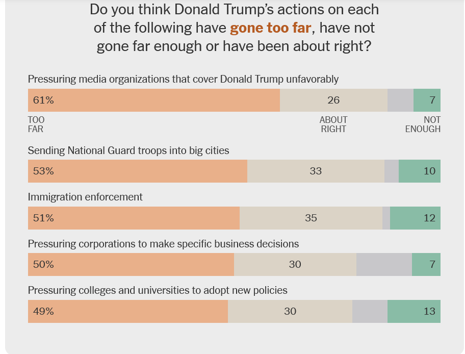 A new NYT poll out this morning confirms what we’ve been seeing in polling over the past few months - there is very little support for his “strongman” authoritarian tactics: Two recent ads from our side are examples of what an expanded agenda and message frame can look like. Here’s a new ad from a House SuperPAC that talks about rising prices/tariffs, health care, shutdown/chaos and broken promises/betrayal (this one is from AZ-6, the campaign has similar ads in 9 other districts right now): And here’s the latest ad from Gov. Newsom and Yes on 50 - tariffs/costs, health care, betrayal, and threat to democracy: Trump and his agenda are deeply unpopular, his government is failing, and he is in physical and cognitive decline. We are in the fight with him we all wanted to have but in my view we must now to do two things to strengthen our position and make it more likely we win: 1) broaden our argument and create a national rallying cry 2) create a more coordinated and sophisticated communications infrastructure. Now, Let’s Get To Work Everyone!!!!!!!!!!!!Today is the final day of the 3rd quarter, a very big filing deadline. Do what you can to help our candidate close strong by donating before midnight tonight! Winning The Fall - Support Our November, 2025 Candidates and Yes On 50