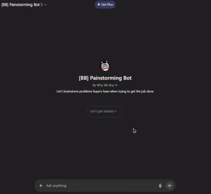 He's specifically trained on my Problem-Up method and designed to help you efficiently work through each step. All you have to do? Just answer a few straightforward questions about your business, then get insanely helpful output you'd never get with generic AI prompts.