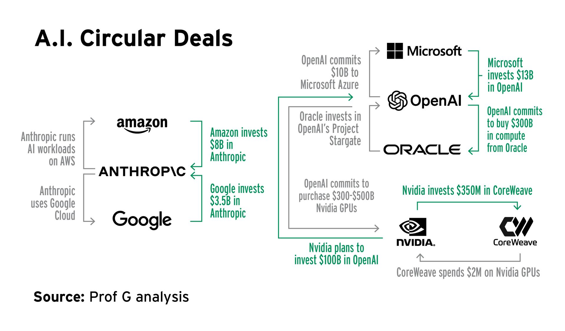 | | The Hidden Fragility of AI's Biggest Deals | The AI infrastructure build-out accelerated last week with hundreds of billions in new commitments. | Nvidia announced plans to invest up to $100 billion in OpenAI. The following day, OpenAI, Oracle, and SoftBank unveiled five new data center sites for their $500 billion Stargate project. One day later, Oracle said it would raise $15 billion in debt to help fund its massive data center build-out — just weeks after OpenAI signed a $300 billion compute deal with the company slated to start in 2027. Finally, CoreWeave expanded its cloud supply agreement with OpenAI by another $6.5 billion, marking the third major increase in the past year. | These deals raise two distinct concerns. In some cases, firms are making commitments with money and assets that don't yet exist. | | In others, revenue comes from "circular financing," where dollars just rotate between companies, obscuring true market demand. | | | The concern is that vendor financing and debt could mask weak demand, driving excessive AI build-outs. Until now, most data center spending came from Big Tech's cash flow, keeping risk contained. | That's shifting: OpenAI has committed money it doesn't have to Oracle, and Oracle's cash flow turned negative this year for the first time since 1992. Reliance on external financing pushes risk beyond shareholders to banks, bondholders, and credit markets. If demand doesn't keep pace, debt could stretch the AI bubble to its breaking point. | |