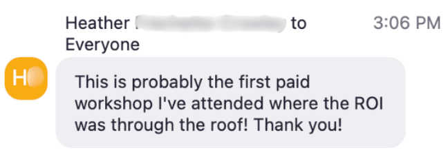 | "I've tried trainings like this before, and they didn't help. I don't see how this workshop would be any different." Sound familiar? Heather was in your exact shoes the last time we opened doors to Offer Breakthrough. She had attended other workshops that had let her down. But here was her unfiltered reaction after my hands-on workshop: When you've been burned so many times, it's easy to feel like nothing's gonna work. And scalable offers seem like things only the "gurus" with massive audiences get to achieve. Phew, I get it. - You've probably sat through webinars where the host spent 45 minutes teasing their "revolutionary framework" only to reveal it was a sales pitch for their $15,000 mastermind. (Been there, too.)