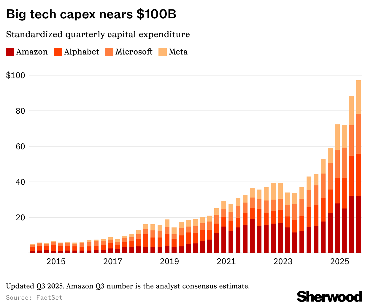 Megacap tech dragged down the S&P 500 and Nasdaq-100 as every BATMMAAN stock was in the red except for Alphabet and Apple. The AI trade was off as investors expressed concerns about Meta'sbig spending plans. Though the Russell 2000 also fell, it fared slightly better than the benchmark S&P 500 index and tech-heavy Nasdaq 100.