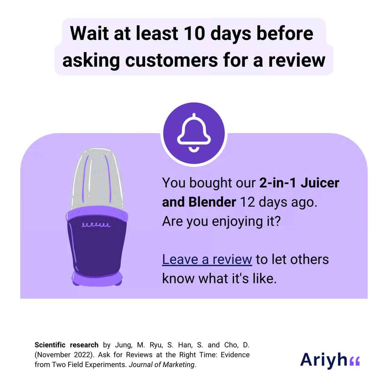 💡 Recommendation: Wait at least 10 days before asking for a review to increase the chance they review by 40-60%.