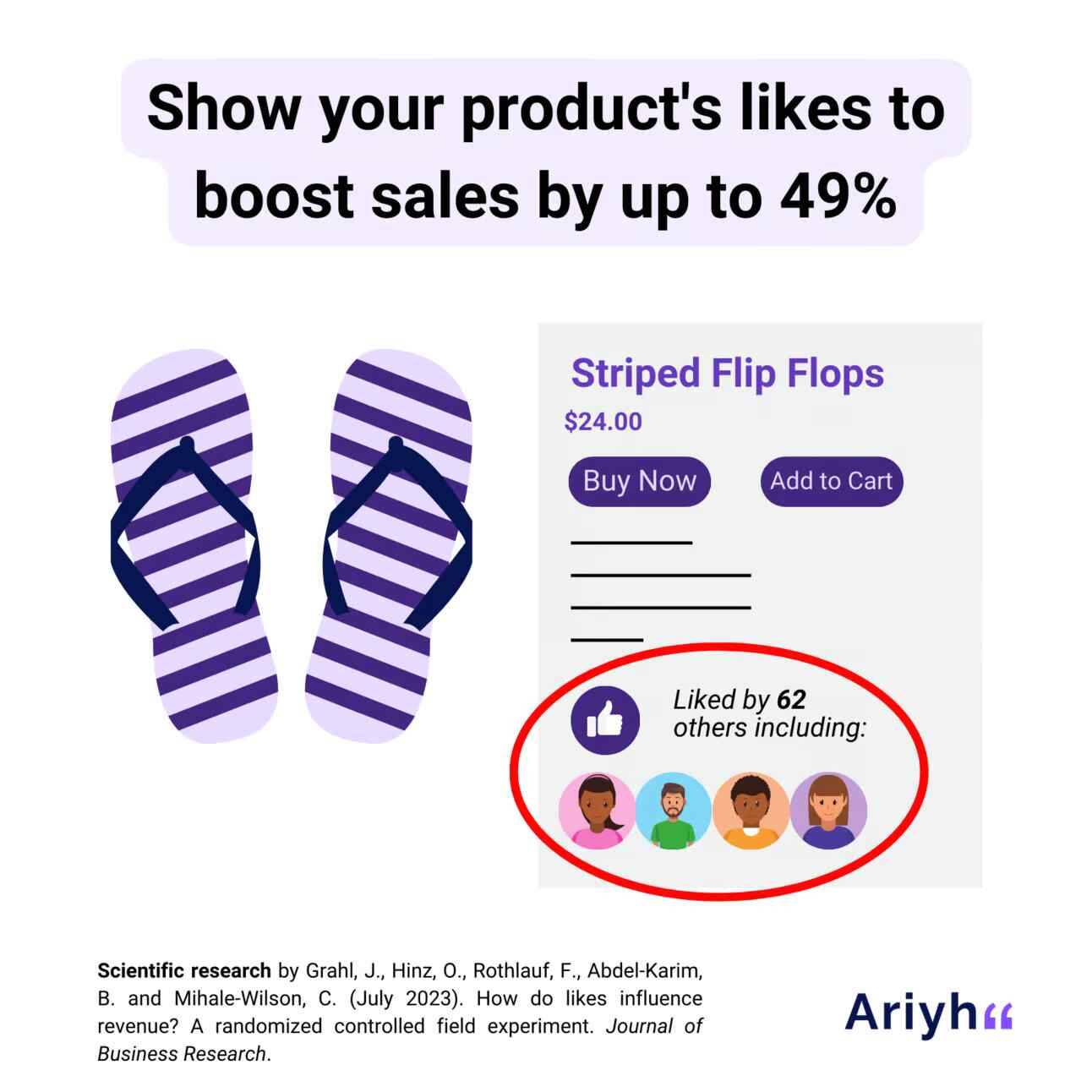 💡 Takeaway: Show a product's likes and a few profile photos of people who liked it. There are web-builder apps and embeds that can pull these in automatically to your product pages.