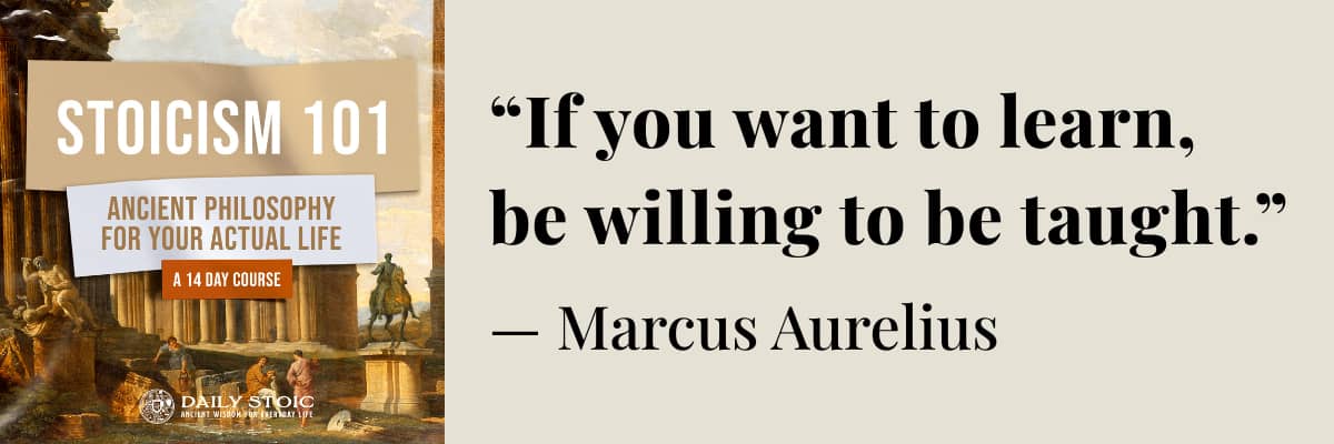Whether you're a beginner at Stoicism or you've been studying it for years, there is something to be gained by getting up and going to "school"—because learning, as Marcus said, is always a good thing. Registration for this LIVE course closes when the course starts MONDAY, NOVEMBER 10th. Take the next step in your Stoic education. Head here to sign up today! Read on DailyStoic.com *** |