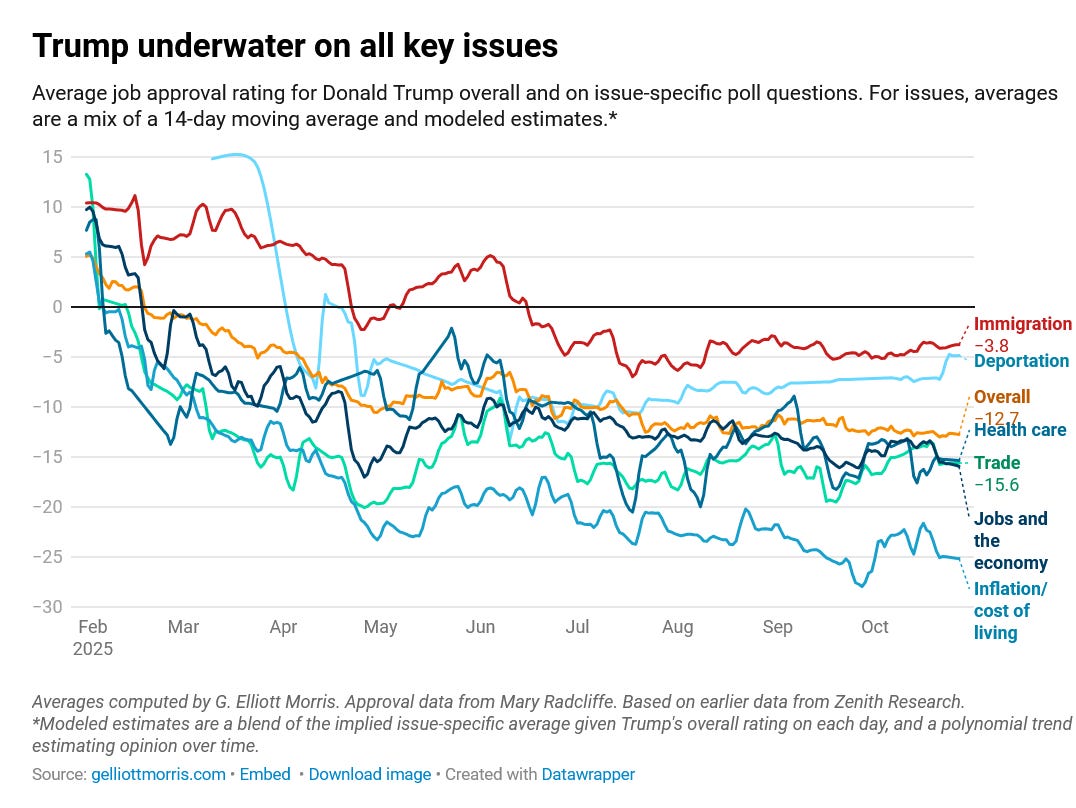 The Trump Presidency is a crisis for America, and that crisis is about to get a whole lot worse. To echo Harry Enten it is hard to believe what Trump is doing to the country; hard to believe how ridiculous this all has become; hard to believe that he is content letting people starve here in America and die across the world; hard to believe that he plunging the country deeper into crisis, which he will be blamed for, in the final days of the 2025 elections.