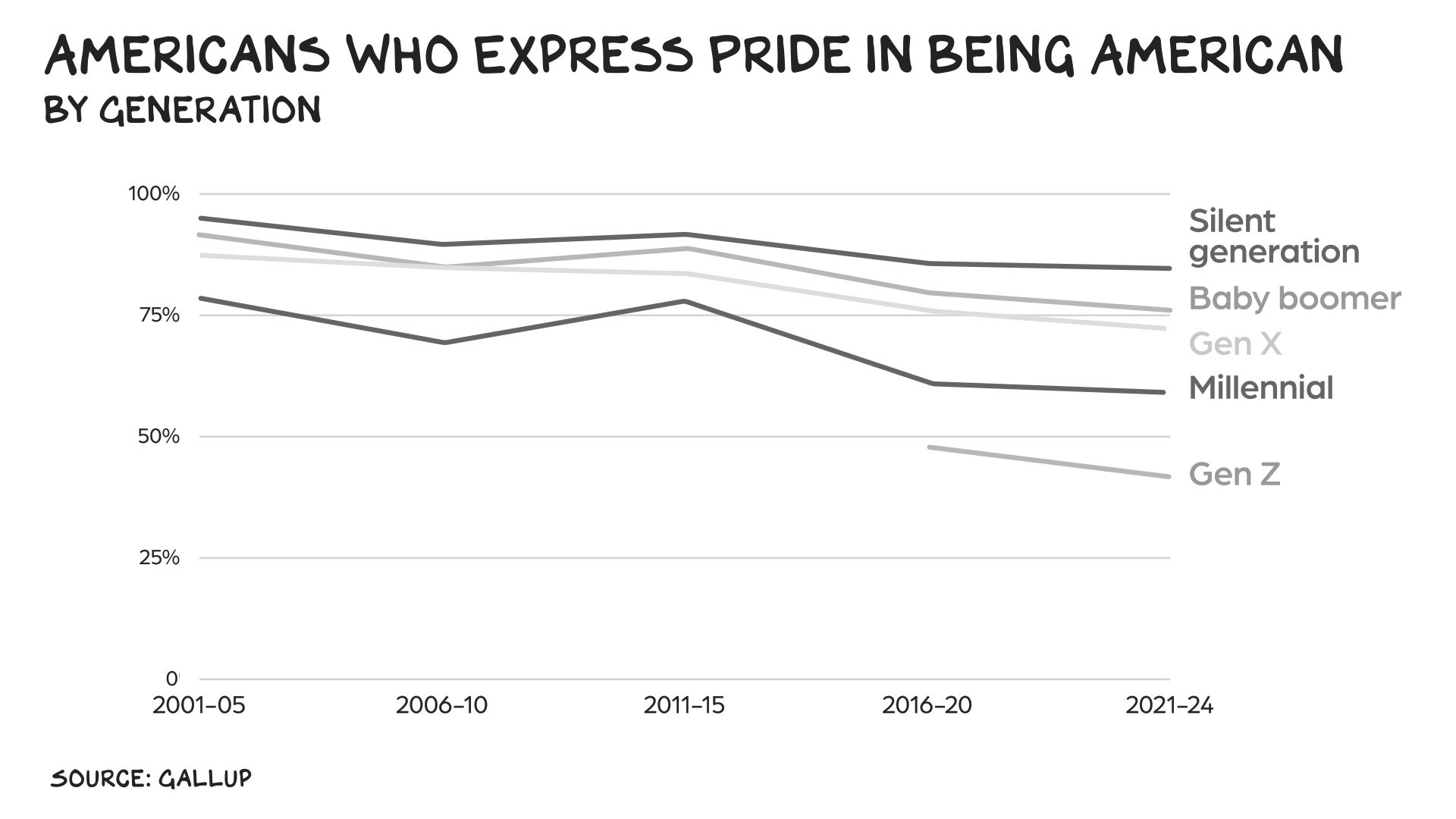 | | Was this newsletter forwarded to you? Subscribe here | | An Office Hours listener asked what I'd say to President Trump if he invited me to the White House. I've struggled my whole life with being right vs. being effective. So, as we're meeting with the president … let's focus on being effective. We don't have much common ground, but we're both fathers. Let's start there. As we'd likely have only a few minutes, we'd need to be focused — one issue max. The one thing I'd advocate for? I'd make a case for mandatory national service, as I believe that even the most polarized societies can find common ground when it comes to their children. (Yeah, I know, the whole denying SNAP benefits to kids. But it's my imaginary meeting, so just go with it.) | The Kids Aren't All Right | I believe young Americans are fed up with a country they're raised to love but that doesn't love them back. Our spending priorities (entitlements), tax policies (capital gains and mortgage interest deductions), and fiscal priorities (bail-outs of incumbents) are the greatest transfer of wealth from young to old in history. Old people have figured out a way to vote themselves more money, and even if the younger generations aren't good at it, they can do math. | The unemployment rate among 16- to 24-year-olds is 10.5% — the highest since the pandemic and, excluding that period, the highest since 2016. Zoomers report feeling more lonely, depressed, and anxious, and less successful, than other generations. It doesn't help that 200-plus times a day they receive notifications on their phone that they're failing, as their cohort vomits fake wealth/success onto them. The most noxious emission in America isn't carbon but shame. Young people aren't facing one crisis but a cascade of them — and that's made worse by adults who enjoyed the shade of trees planted by others but are now clear-cutting forests meant for the next generation. | | Connective Tissue | My parents belonged to the Greatest Generation. Their collective sacrifice won World War II, while their sense of national identity, forged by service, fueled the prosperity and progress of post-war America. On Prof G Conversations, historian Heather Cox Richardson told me "there was a very different sense of what it meant to be an American" then, adding that people prided themselves not on how much money they made, but how they took care of their communities. Writing about the people who came of age in post-war America, journalist Tom Wolfe coined the term the Me Generation. Prosperity created what Wolfe called "the luxury of the self." I know that luxury well. I didn't serve my country — one of my great regrets. Marketplace host Kai Ryssdal, a contemporary and Navy veteran, told me national service would transform America. "We don't know each other anymore," he said. "It's a generational thing." | At the end of Notes on Being a Man, I close with a letter to my sons, urging them to be patriots — to vote, pay taxes, and be evangelists for America and its values. I encourage them to give others the benefit of the doubt and treat them with respect, if only because they're fellow Americans. For my boys' generation, their fellow citizens are strangers. Our connective tissue is fraying. According to Gallup, the youngest Americans are the least patriotic. I believe mandatory national service could help repair the damage by encouraging young people to see themselves as Americans, first and foremost, and to be proud of that identity. | | E Pluribus Unum | National service in Singapore, the most religiously diverse nation on Earth, is called "school for the nation," because of its ability to forge a national identity. A study that looked at Singapore's national service programs concluded that socialization is a key mechanism for transmitting norms and values, while contact with people from different groups reduces prejudice. Those who serve in units that are housed together were 17% less likely to close ranks around their demographic group. By comparison, each year of education beyond secondary school achieves the same effect, but by only 2.5%. | In the U.S., 6% of adults are veterans, while active-duty service members comprise less than 1% of all adults. An estimated 64,000 young Americans and an additional 200,000 seniors volunteer for AmeriCorps, the primary umbrella organization for civilian service programs. We have the programs, but lack scale. Still, we know what works. Democratic Congressman Jason Crow, an Army veteran, favors expanding voluntary national service. On Raging Moderates he said, "When city kids get together with farm kids, and white, Black, Asian, Latino, straight, and gay people roll up their sleeves and build something together … that creates a foxhole mentality that breaks down barriers and connects us." The sentiment is bipartisan. Republican Senator Bill Cassidy has co-sponsored bills to strengthen AmeriCorps and provide tax relief to volunteers. Republican Senator Todd Young co-sponsored the Unity through Service Act. In 2016 candidate Trump said there was "something beautiful" about national service. On that point, we agree. | United We Serve | Enlisting in the military isn't the only way to serve. The U.S. has a long history of civilian national service programs. While the mission of each program varies, Congress has historically identified two goals for national service: meeting the needs of communities and developing the capacities and character of participants. Underinvestment in these programs is an American tragedy. As a 2018 NIH report put it, "Higher levels of civic responsibility, voting, volunteering, employment, respect for diversity, and overall life skills such as decision making and time management are all associated with AmeriCorps participation." We should ramp up AmeriCorps and define service broadly, as our nation's needs are as diverse as our people. How young people serve — being rural firefighters, volunteering in a no