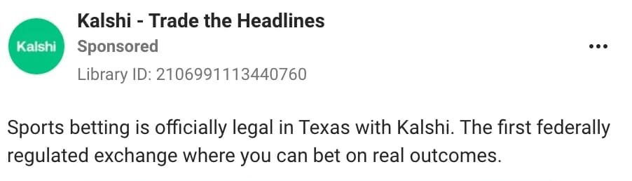 | Proponents of prediction markets claim that trading on future events isn't gambling. Last November, Kalshi's lawyers argued that it is a "federally regulated exchange" and that gambling laws applied only to games or game-related events. A few months later, the company started letting users bet on the Super Bowl. | | Dustin Gouker noted in his Event Horizon newsletter that Kalshi has even run social media ads promoting sports betting. | | Kalshi doesn't have much to fear from federal regulators. Trump and his inner circle have deep ties to prediction markets. Trump's first pick to lead the Commodity Futures Trading Commission (CFTC), which oversees derivatives markets, was a Kalshi board member. His next nominee is a lawyer for a firm that has represented Kalshi, arguing it was "arbitrary and capricious" to ban sports event contracts. Donald Trump Jr. advises both Kalshi and Polymarket, and invests in the latter. Susquehanna International Group, the trading firm co-founded by billionaire Jeff Yass and a major Trump donor, is one of Kalshi's primary market makers. | Trump's familiarity with gambling goes back decades, but his record isn't exactly encouraging. Starting in the 1980s, his Atlantic City casinos lost more money and jobs than their competitors and filed for bankruptcy four times. |