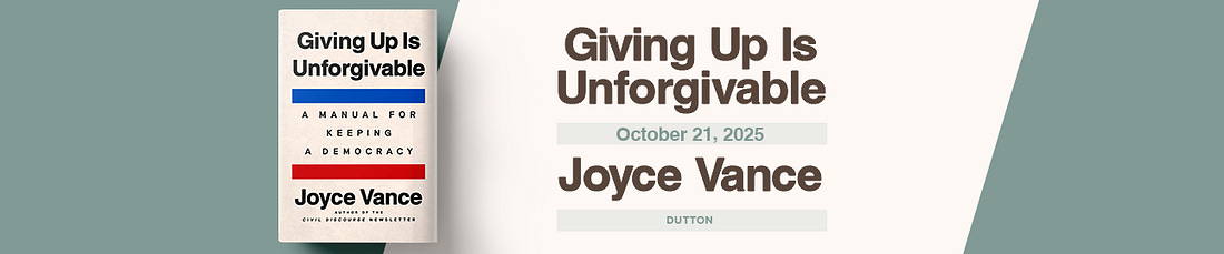 This week, we’ll be keeping our eyes out for developments in a number of different areas: National Guard Cases SCOTUS has no scheduled arguments this week, but that doesn’t mean there won’t be activity there. With the Chicago National Guard case already before the Court, on Friday, the administration appealed the Oregon decision that permanently enjoined the president from deploying National Guard troops to Portland. And on Monday, all parties in the Chicago case will file their final briefs. The Supreme Court has not yet scheduled the Chicago case itself for oral argument. The emergency appeal, an effort by the administration to end the lower court stay that prevents Trump from deploying troops while the litigation is underway, could be decided this week, after the briefs are in. The underpinning of the White House’s argument in both Chicago and Portland is that the troops were being sent to “protect federal assets and personnel,” pursuant to Title 10 of the U.S. Code, which allows the president to federalize troops under certain designated circumstances. The White House argues that the courts may not review the president’s decision to deploy. Reporting last week suggested that only 2.6% of 614 people arrested during “Operation Midway Blitz” in Chicago had criminal histories, per DOJ records. If statistics like that are reflected in the record when the Court considers the case, it would undercut Trump’s argument that federal property had to be protected from attack by dangerous criminals. The Epstein Files In a dramatic Sunday night reversal, Trump wrote on Truth Social that Republicans in Congress “should vote to release the Epstein files, because we have nothing to hide.” Of course, if that were true, he wouldn’t have been fighting the release for months. Which leads us to wonder, what changed? Was Trump’s dramatic Twitter breakup with Marjorie Taylor Greene, whom he alternately dubbed Marjorie Treason Green and Marjorie Taylor Brown, all for nothing? Perhaps Trump is just caving into the inevitable. It seems likely that a big tranche of Republicans is set to vote for the release measure, whether he wants them to or not. Or perhaps it’s the knowledge that with DOJ having opened a new investigation, albeit only into Democrats, there is reason to withhold at least some portion of the documents. It was only two days ago that Trump called on the Justice Department to investigate the connection between prominent Democrats named in Epstein’s text messages and the convicted sex offender, as well as the role of financial institutions. DOJ routinely delays release of evidence involved in a criminal investigation until it is complete. Trump could have the best of both worlds—supporting release while knowing his lawyers would object. We’ll have to watch to see how it all plays out this week. Pardons On the opposite end of the spectrum from the revenge prosecutions, like those against Jim Comey and Letitia James that the DOJ has launched, the rewards Trump is handing out—pardons for those he favors. That’s what happened last week in the case of Dan Wilson, who received a second pardon from Trump. Wilson, a militia member who participated in the January 6 insurrection, had been previously pardoned for that offense. But he also stood convicted of illegal firearm possession in Kentucky. Trump, the man who is so outraged by what he claims is crime driven by “illegal aliens,” used his pardon power to erase the gun charge for Wilson, too. The message couldn’t be more clear. Trump is reminding the MAGA-faithful about the value of loyalty to the cult leader. He doesn’t care about people who put our communities at risk of violence, the rationale he’s trotted out in Portland and Chicago. It’s a disgraceful exercise of the power the Founders entrusted to presidents so that they could do justice. There could be more this week. Book Tour Note If you’re in Birmingham, Alabama, I’ll be signing books at the Barnes and Noble at The Summit from 6:00 PM -8:00 PM. I’d love to get to see you! We’re in this together, Joyce You're currently a free subscriber to Civil Discourse with Joyce Vance . For the full experience, upgrade your subscription. |