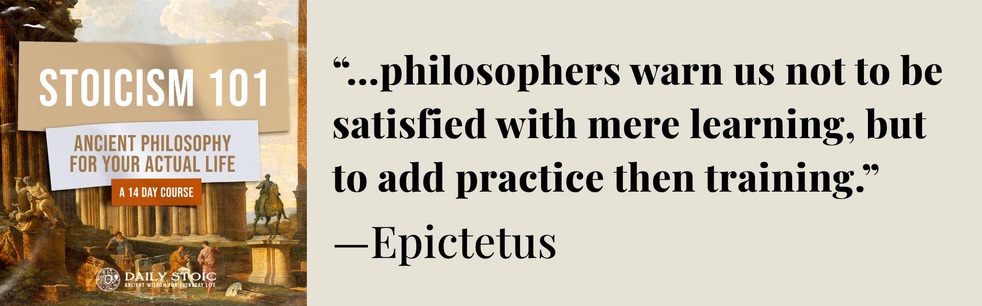 It's a 14-day course designed to kick-start your study and practice of Stoicism. To introduce you to Marcus Aurelius, Seneca, Epictetus, and other Stoics to learn what made them great, and what we can learn from them. What we should read, and how we should read it.
