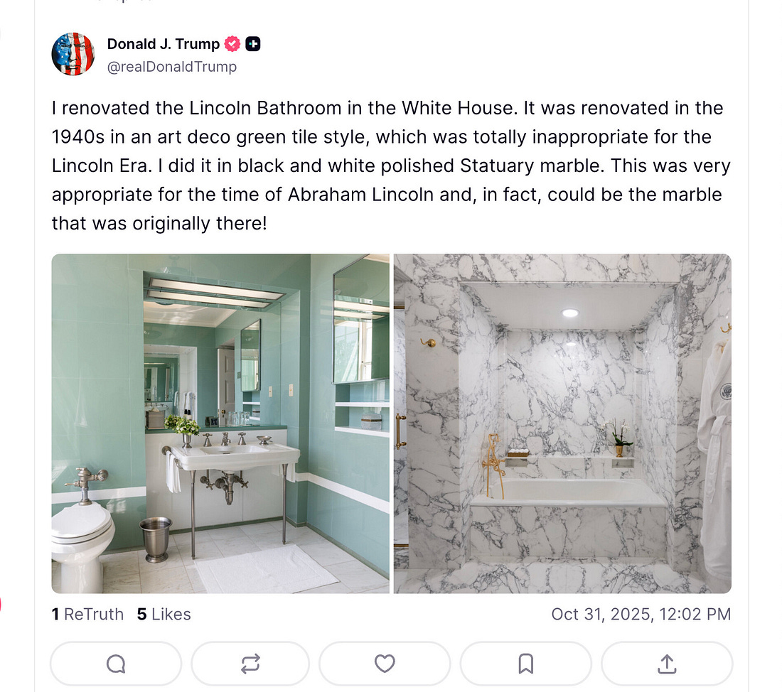 Winning These November Elections, David Pepper Previews 2026 In Ohio, A Declining Trump Goes All In On "More For Me, Less For All Of You"Let's leave it all out there on the playing field these next four days everyone!Morning all. As Donald Trump plunges America deeper into crisis here is what he was thinking about and doing yesterday: And then we got this important message from Dear Leader: And then, incredibly, on the eve of SNAP benefits expiring for 42 millions Americans, and many tens of millions learning of huge health insurance premium increases, both due to his policies, Trump hosted a Great Gatsby/Roaring Twenties (!!!!!!!!) themed Halloween party at Mar-a-Lago: Even the New York Times couldn’t look at away at this extraordinary modern day “let them eat cake” or as we call it here “more for me, less for all of you” display. Here’s an excerpt from their front page story as “As the Shutdown Pain Grows, Trump Attends To Other Matters.” It reads like something from The Onion: