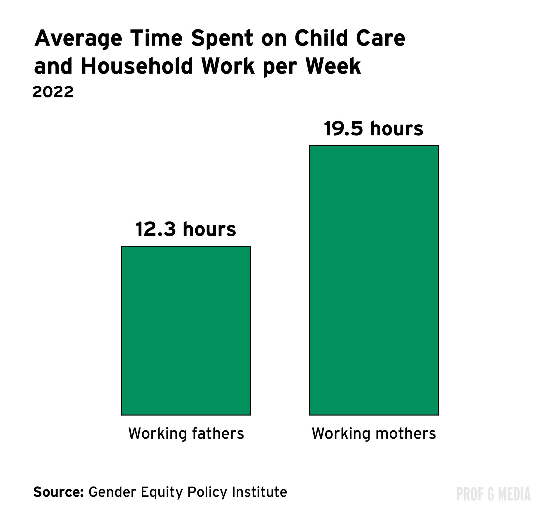 | The data bears this out. Working men and women report similar pressure to provide financially, yet working mothers still take on far more child care and housework than working fathers. | On top of that, studies show a persistent gap in how parenthood affects career growth: Being a mother typically reduces women's earnings, while fatherhood can raise men's earnings. There's even a name for this disparity: the mommy track. | |