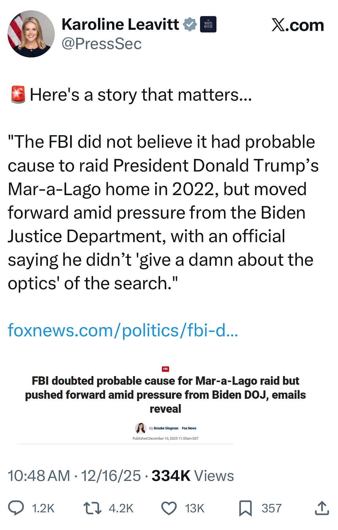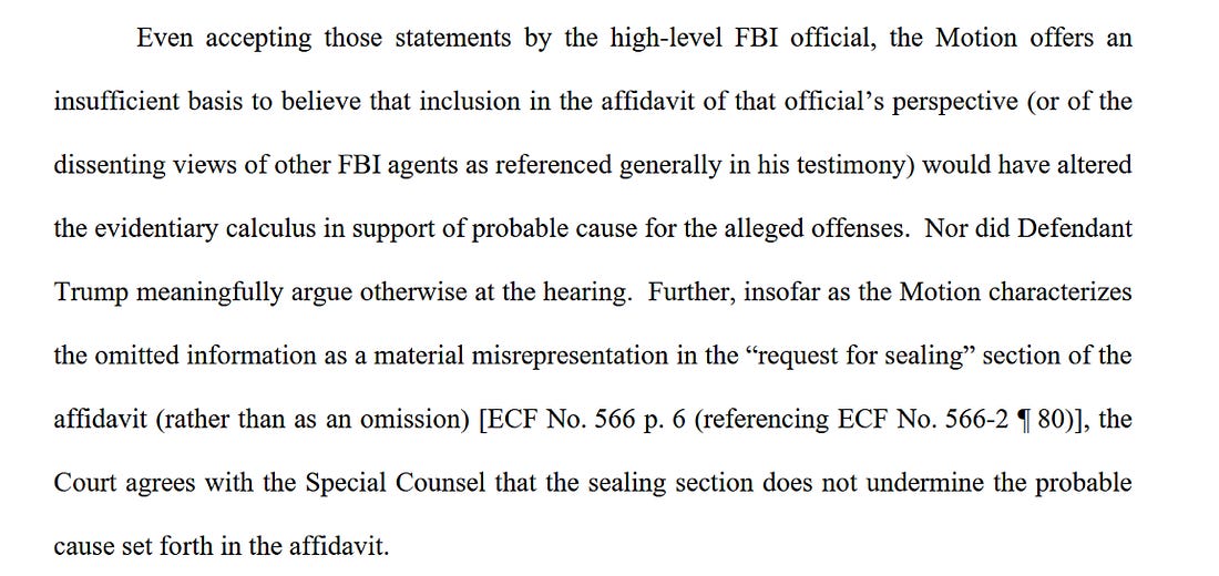 “We believe you possess information vital to our constitutional oversight responsibilities,” House Judiciary Chair Jim Jordan wrote to each of the four, according to a report from CNN. No word on whether the four will agree to interviews or wait for subpoenas. Presumably, Republicans have no more incentive to permit these witnesses to testify publicly than they do with Smith. But the Committee’s Republicans aren’t the only ones after information. Democrats want DOJ to release part two of Smith’s final report on the Mar-a-Lago case, which remains under seal. According to House Democrats, that report “details how Donald Trump knowingly retained hundreds of presidential and highly classified records at his Mar-a-Lago club and then deliberately defied subpoenas, obstructed law enforcement, hid evidence, and lied about his continuing retention of these records.” The lawsuit to release the report is still pending in the Southern District of Florida before Judge Aileen Cannon. House Democrats filed an amicus brief in that case and wrote to Attorney General Bondi, demanding that she release the report before Smith testified, so it would be fair game. “This Administration has repeatedly boasted that President Trump is ‘the most transparent and accessible president in American history.’ Your campaign to bury Mr. Smith’s report makes a joke out of that claim,” they said to her. “You are permitting prosecutors to be hauled before Congress to defend their work while denying Congress and the American public the written record that would explain it.” Judge Cannon has been dragging her feet on ruling on the release since January. American Oversight, a bipartisan group that works to expose misconduct and hold government accountable, filed a petition for mandamus, asking that Judge Cannon be ordered to rule. The Eleventh Circuit, in a rare move, granted that request in November and gave the Judge 60 days to get it done, finding she had engaged in “undue delay.” Expect Judge Cannon to take virtually all of those 60 days before she rules, although perhaps Trump’s lawyers, at least those of them who haven’t joined his new administration, will seek further delay. The Trump administration is trying to cast doubt on the Mar-a-Lago case Ahead of the hearing, the administration appeared to take a stab at delegitimizing Smith’s work. Fox News ran a story Tuesday headlined, “FBI doubted probable cause for Mar-a-Lago raid but pushed forward amid pressure from Biden DOJ, emails reveal.” In a story they labeled as an “EXCLUSIVE,” they reported, “The FBI did not believe it had probable cause to raid President Donald Trump’s Mar-a-Lago home in 2022, but moved forward amid pressure from the Biden Justice Department, with an official saying he didn’t ‘give a damn about the optics’ of the search, newly declassified documents reviewed by Fox News Digital reveal.” The story claims that an “email revealed that the FBI’s Washington Field Office did ‘not believe (and has articulated to DOJ CES), that we have established probable cause for the search warrant for classified records at Mar a Lago.’” MAGA Twitter exploded with claims like this one: “IT’S OFFICIAL: A bombshell memo was just dispatched to Congress finding the Biden FBI DID NOT find PROBABLE CAUSE to raid Donald Trump’s Mar-a-Lago, but prosecutors did it anyway. CONSEQUENCES are needed. This is an unprecedented miscarriage of justice.” Press Secretary Karoline Leavitt retweeted the story. But even Judge Cannon rejected any notion that some dissent within the ranks at the FBI invalidated the probable cause used to obtain the Mar-a-Lago search warrant. While the case was in progress, Trump’s lawyers asked for a Franks hearing, a process for challenging the truthfulness of statements made by an agent in the affidavit used to obtain a search warrant. If a defendant succeeds in a Franks hearing, he can ask the judge to exclude any evidence seized in violation of the Fourth Amendment’s prohibition against unreasonable searches. But Cannon didn’t find in Trump’s favor in this instance, finding that there was sufficient probable cause for the search warrant despite any dissent in the FBI ranks. Cannon held that considering dissenting views by FBI agents would not have “altered the evidentiary calculus in support of probable cause,” a remarkable ruling from a Judge who leaned strongly in Trump’s favor throughout. And, of course, the results of the search, which revealed boxes full of classified documents, confirmed that prosecutors got it right. Moreover, reporter Carol Leonnig, who wrote about these events in her recent book, INJUSTICE, posted on social media that the Fox News report got it wrong. Leonnig posted that the Fox News report was “misleading” because “Senior @FBI officials agreed there was ample probable cause before the Aug 2022 raid - incl videotapes showing Trump aides had secretly moved boxes of government records out of storage room.” She posted a page from the book that explained her assessment. There are people who are interested in discrediting Smith and his investigation, and intimidating his coworkers, before he even gets started with his closed-door testimony in the morning. But the prosecutors involved aren’t people who back down. They are people who believe in proceeding against the powerful without fear or favor—that’s what public corruption prosecutors do. They don’t care, as this administration does, about whether a target is a friend or a foe of the president; their commitment is to doing justice. The administration can fire Jack Smith and his team, it can harass them, but there are still heroes who believe in doing the right thing, in the right way, for the right reasons. Tomorrow, Smith goes up against House Republicans. We won’t be able to watch the proceedings because those members of Congress are afraid to let us see them. But there is m