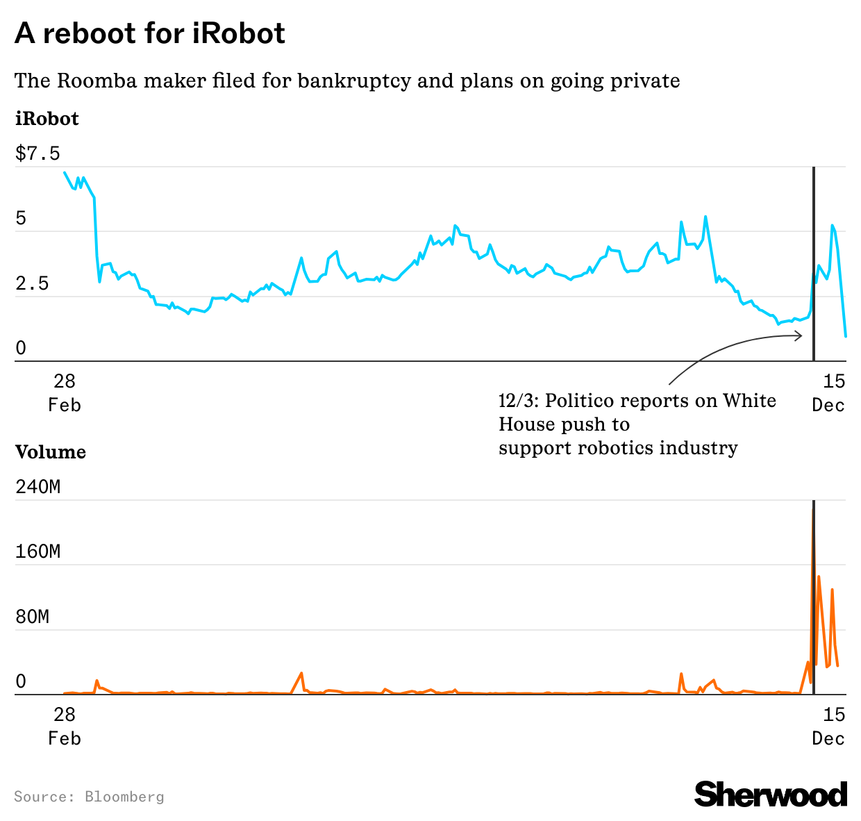 iRobot files for Chapter 11 bankruptcy just 11 days after its record one-day gain |