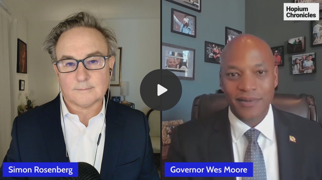 Simon Rosenberg: Listen, so glad to have you here. Author, combat veteran, Rhodes Scholar, first Black governor of Maryland, remarkable resume. I also just want to say that I’m a huge admirer of your speaking skills and one of our most, I think, powerful orators and speakers and communicators in the Democratic Party. So it’s really great to have you here.