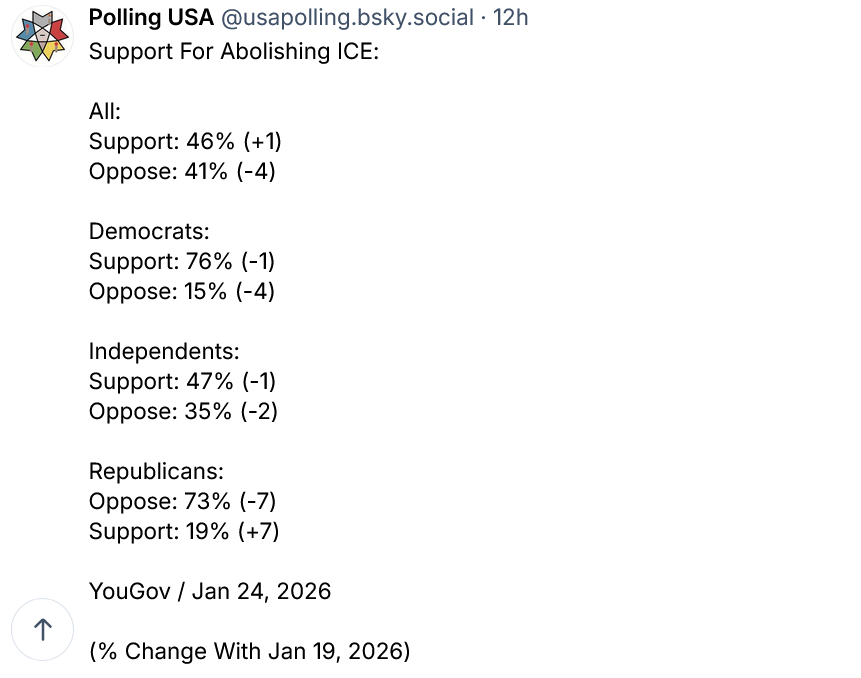 “Abolishing ICE” is no longer a fringe position. It’s +12 with Independents in a new Economist/You Gov poll: