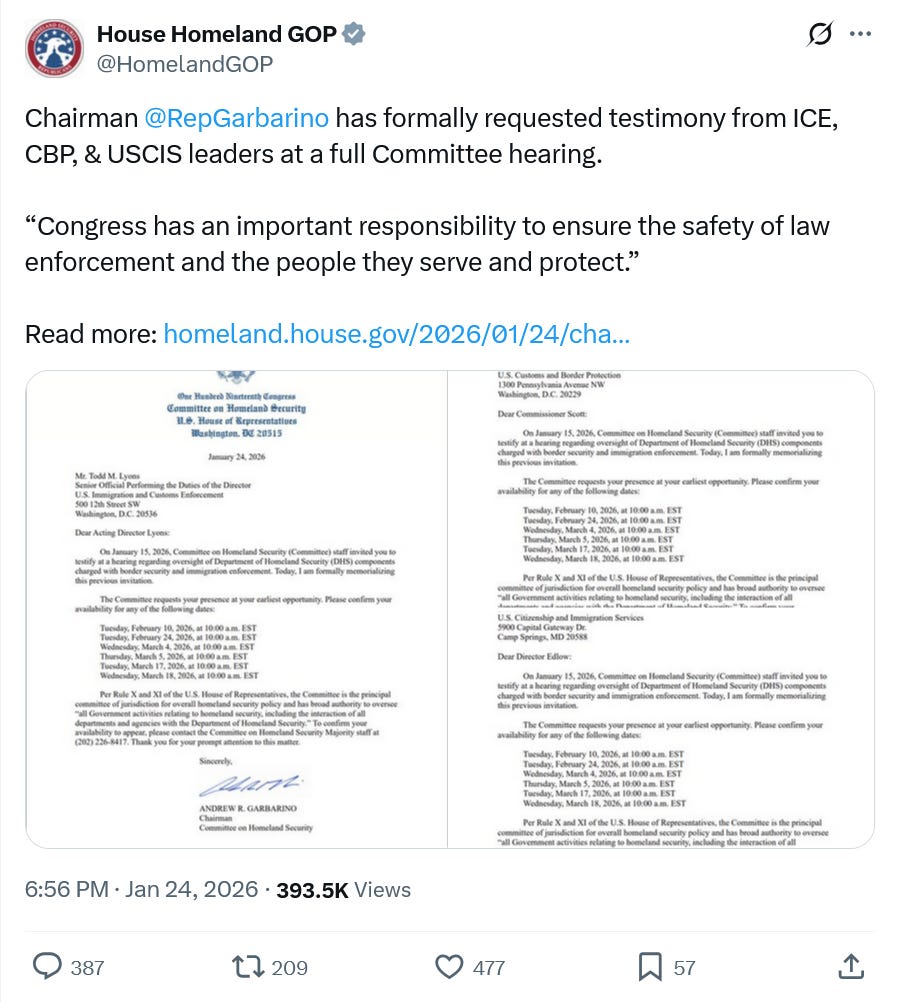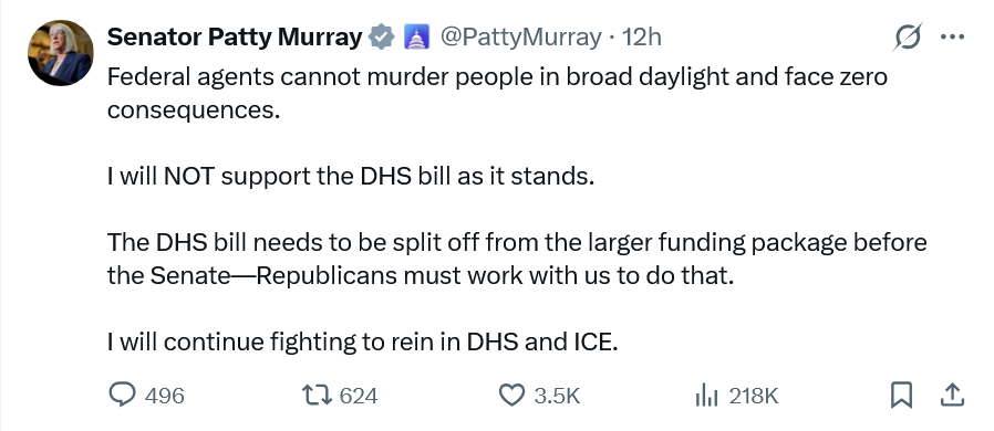 We’ve been advocating since the summer for Democrats to make a stand on the fiscal year 2026 DHS appropriations bill and fight. And now they have. We are in the fight we wanted everyone. The American people are on our side. The law is on our side. But as get ready to do battle this week we must lift our gaze up a bit, and focus on how we can organize ourselves to make it far more likely we are successful in the days, months, and years ahead: