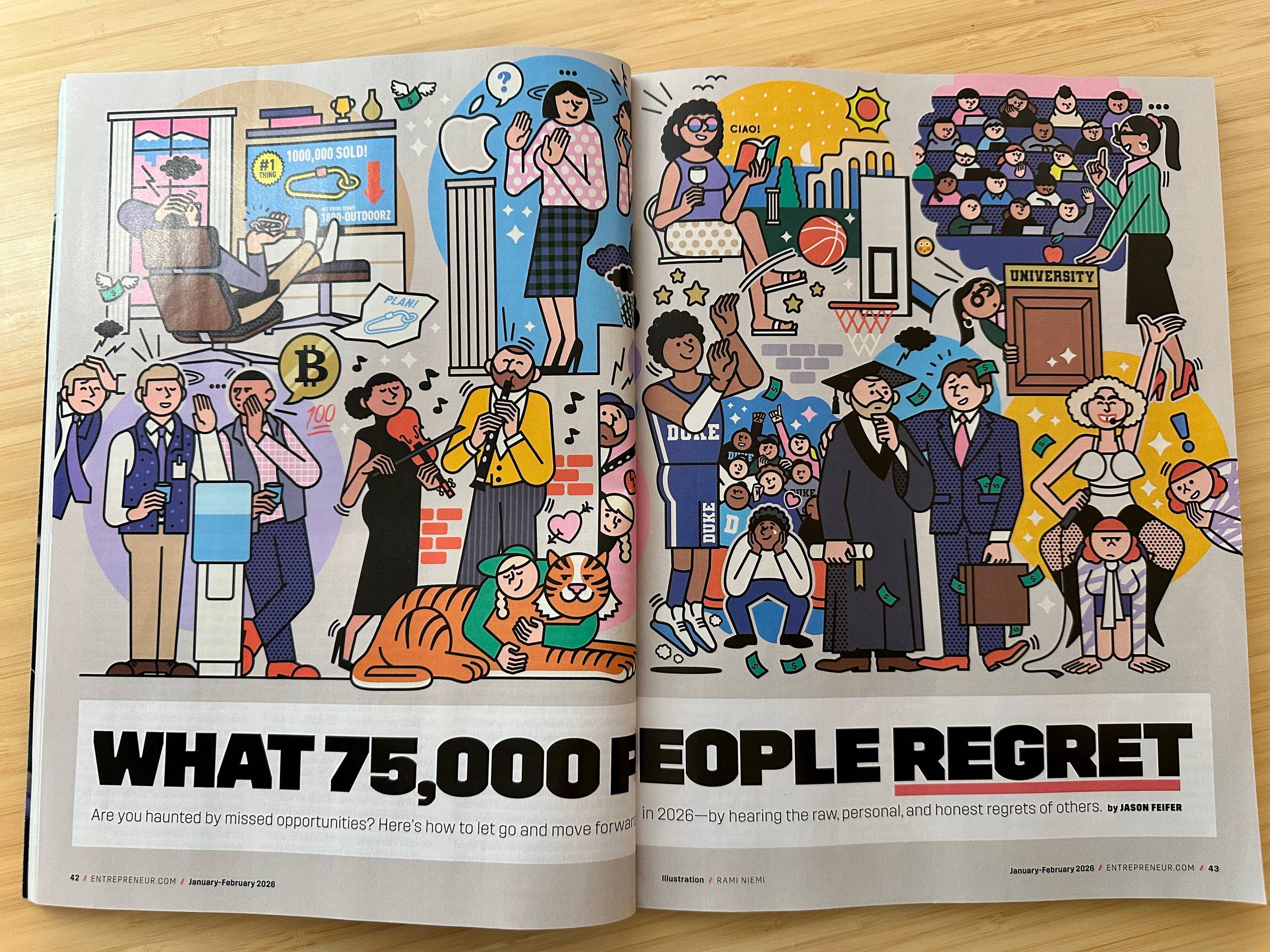 P.S. Remember that newsletter I wrote about regrets? I asked you all to share your regrets with me, then wrote a newsletter about the trends I'd seen. Well, fun update: We published it in the current (January) issue of Entrepreneur. So if you were one of the people who sent me an anonymous regret, you can now find your words on newsstands everywhere. :)