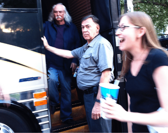 We'd gone to see Crosby, Stills, & Nash, one of my wife's favorite groups. As we arrived at the venue, we saw David Crosby walking out of his tour bus. A security guard was nearby.