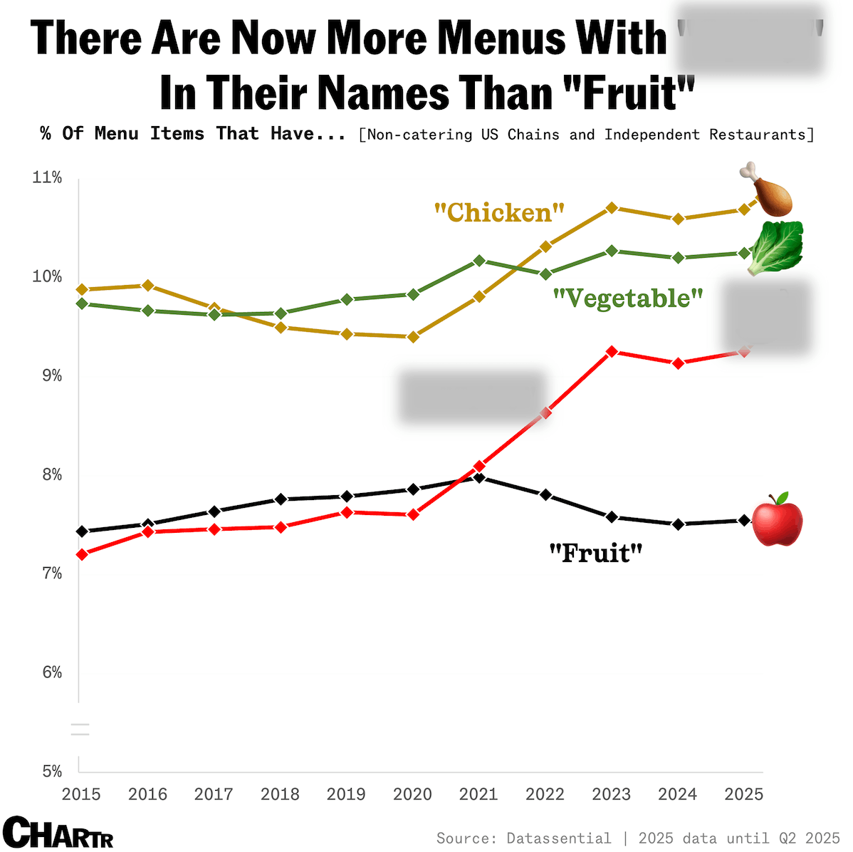 Off the charts: Which food trend has recently gone mainstream in US restaurants, overtaking "fruit" in menu mentions? [Answer below]. | Not a subscriber? Sign up for free below. |