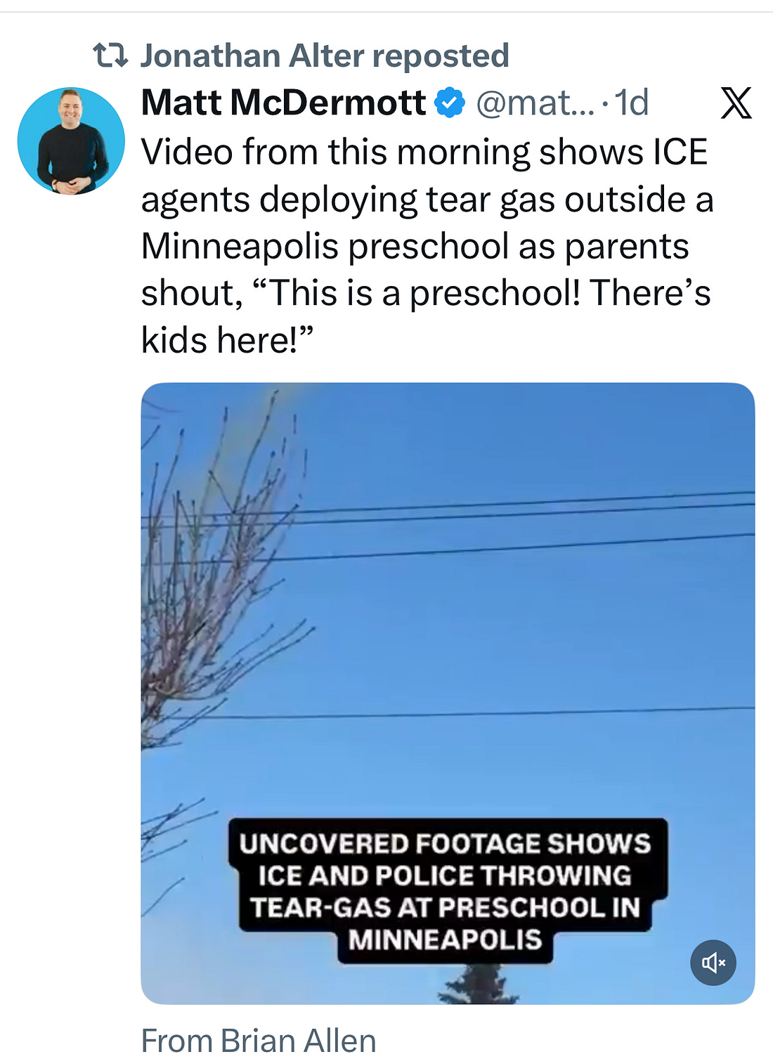 Today, more from Judge Schlitz in Minnesota. Last night, we read about his order in Juan, T.R. v Noem that the acting Director of ICE, Todd Lyons, would have to appear in court on Friday, in person, unless ICE complied with his order to either hold a bond hearing for or release the petitioner in the case, Juan. Subsequently, ICE released him. But that wasn’t the last word in the matter. This morning, Judge Schiltz canceled the contempt hearing he had set for Friday, as he said he would if ICE complied with his earlier order. But he had more to say. He savaged ICE, justifiably, for how the agency has conducted itself, just in the last month and just in his court. The full passage is worth reading: “Attached to this order is an appendix that identifies 96 court orders that ICE has violated in 74 cases. The extent of ICE’s noncompliance is almost certainly substantially understated. This list is confined to orders issued since January 1, 2026, and the list was hurriedly compiled by extraordinarily busy judges. Undoubtedly, mistakes were made, and orders that should have appeared on this list were omitted. This list should give pause to anyone—no matter his or her political beliefs—who cares about the rule of law. ICE has likely violated more court orders in January 2026 than some federal agencies have violated in their entire existence…ICE is not a law unto itself. ICE has every right to challenge the orders of this Court, but, like any litigant, ICE must follow those orders unless and until they are overturned or vacated.” We have been, and with good reason, far more focused on ICE’s behavior on the streets of Minneapolis than its egregious, confrontational stance with the rule of law in the city’s federal courts. But both have reached a boiling point. Judge Schlitz wrote that additional violations would likely be met with additional contempt proceedings and orders for agency personnel to appear. The courts appear to have hit their stride. Yesterday, Donald Trump whined about his unfair treatment: “If we get one person a little bit wrong, headlines,” Donald Trump said, in reference to the murder of Alex Pretti. Yes, Mr. President, that’s exactly how federal law enforcement works. Welcome to the serious responsibility of protecting people on the streets of America, where their lives and liberty take priority, and not just the people that you want in your tribe—everyone who is here, citizen or not. That’s how our Constitution and our rule of law work. If you violate court orders, there are consequences. If you trample on people’s rights, if your militarized agents kill American citizens, there are consequences. That’s something this president has only rarely had to deal with in the past, and it showed in the childish way he complained about being held to account when people have been killed. Greg Sargent wrote last night that Trump doesn’t want to de-escalate tension on Minneapolis streets; he wants to “defuse anger among congressional Democrats,” but he has no intention of changing his policy objectives. “An administration official gave away the game to Punchbowl News, admitting that these “de-escalatory measures” are about placating Senate Democrats so they don’t seize this moment to demand restrictions on ICE as part of any government funding package.” As the clock ticks toward the Friday deadline, Trump is trying to use his stable of tried and true tactics to keep the Democrats from gaining the upper hand. Today, Bruce Springsteen gave us an anthem. “We'll remember the names of those who died. On the streets of Minneapolis,” he sings. I wrote this song on Saturday, recorded it yesterday and released it to you today in response to the state terror being visited on the city of Minneapolis. It’s dedicated to the people of Minneapolis, our innocent immigrant neighbors and in memory of Alex Pretti and Renee Good. Stay free Wed, 28 Jan 2026 17:02:08 GMT View on BlueskyAs Trump continues to push his mass deportation agenda, it’s increasingly clear he’s not fulfilling campaign promises to remove violent criminals from American cities. Trump and Stephen Miller have been confronted with the fact that those cases were already being prosecuted by the Justice Department; they’ve always been a priority. The idea that there were plenty of cases lying around, undone in sufficient numbers to permit ICE to meet the massive arrest quotas they’ve established, has now been thoroughly debunked. In fact, the local outlet MPR News reported that DHS was overstating its accomplishments in Minnesota. Most of the people identified on a “worst of the worst” list released by DHS earlier this month, which they used to boast about ICE arrests in the state, had been transferred to ICE custody before Operation Metro Surge started in December 2025. Civil deportation, the place where they’re trying to make up the numbers, is an entirely different matter. It doesn’t involve violent criminals—they’re already in custody and under prosecution for the most part. The civil proceedings ICE is largely using to detain people in Minnesota, and also in Maine, involve five-year-olds and grandfathers. It’s the “low hanging fruit cases,” people who are here without legal status but who are visible because they work in our communities and care for their families. It involves terrorizing school children. It does not make our communities safer; if anything, it leaves them worse off with absent workers, school kids, and community members. ICE has become a parody, a stereotype of bad law enforcement. With each day bringing fresh outrages from an agency that is undisciplined in the field and receives no discipline from the top. At this point, the predominant emotion so many of us are feeling is anger. Anger that people are being treated like this. Anger that our government is doing it. Anger that it’s doing it with our tax dollars. Last night, Heather Cox Richar