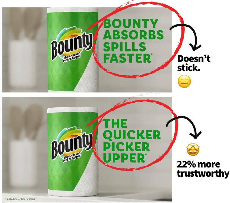 When something rhymes, it's easier for your brain to process. So the words are automatically perceived as more believable, memorable, and trustworthy. That's how a 4-word slogan backed by science transformed Bounty paper towels into the go-to choice.