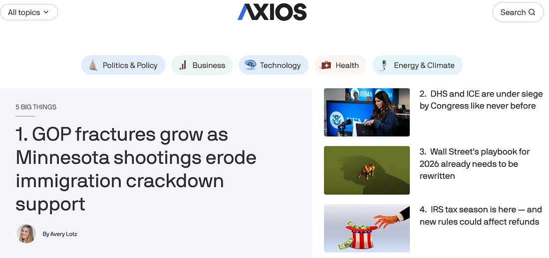 For Fox sake: There’s concern too from officials inside the administration itself — in particular with the rush by senior officials like DHS Secretary Kristi Noem and White House policy chief Stephen Miller to pin all the blame on the deceased. Check out this from Bill Melugin of Fox News: “I’ve talked to more than half a dozen federal sources involved immigration enforcement, including several in senior positions, who all tell me they have grown increasingly uneasy & frustrated w/ some of the claims & narratives DHS pushed in the aftermath of the shooting.”