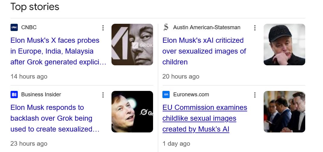 Elon Musk’s AI Tool, Grok, Allows Users To Produce Child Exploitation Images - Not content with sending tens of millions of people to their death through the vaporizing of USAID, or being the most prolific amplifier of Putin the genocidal maniac’s propaganda in the English language, now we’ve come to learn that Elon The Horrible has been allowing users of his Grok AI tool to produce child exploitation images. Here’s an excerpt from a European Commission release: