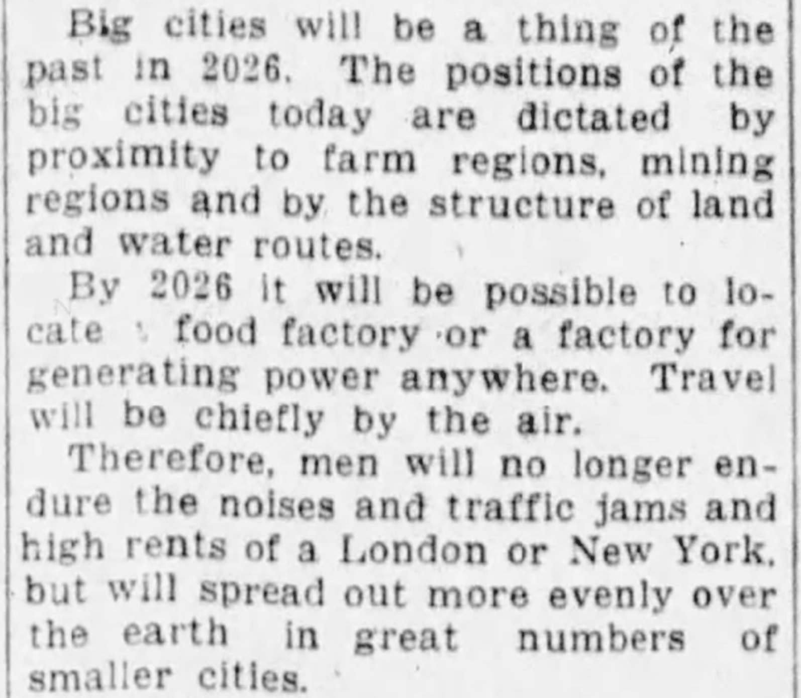 So today, I want to share a few predictions from 1926 — so that you can feel that same sense of connectivity, appreciate the world we live in, and gain some useful perspective on whatever comes next.