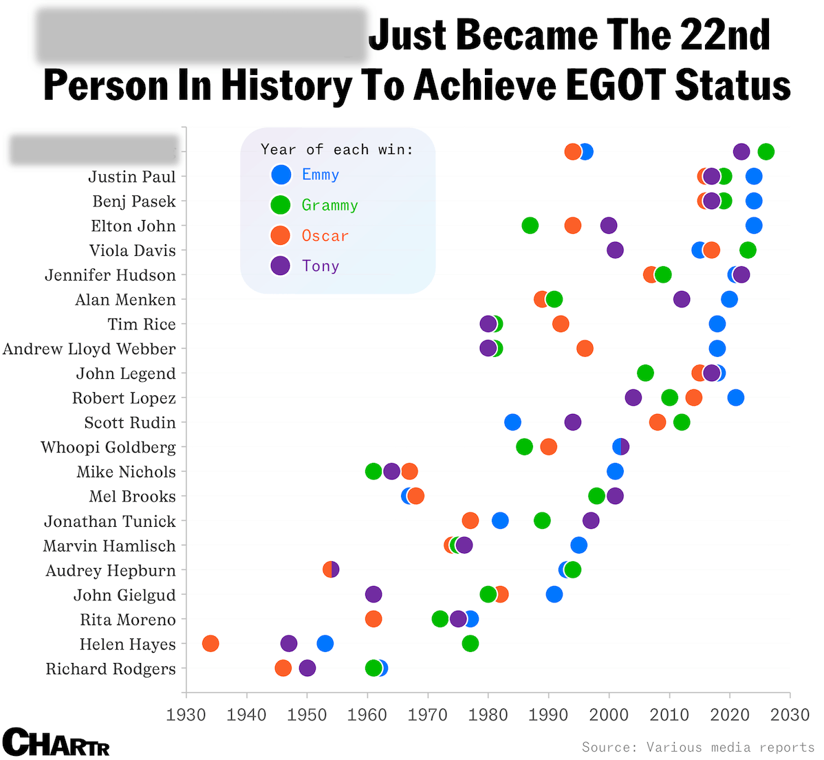 Off the charts: Which legendary director became the latest member of the exclusive EGOT club after winning a Grammy at last night's ceremony? [Answer below]. |
