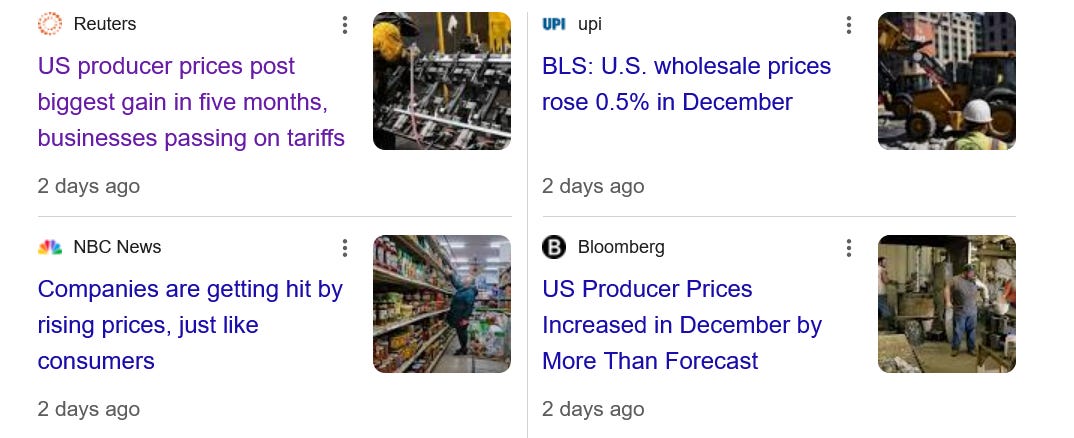 Reining In ICE, Reining In Trump - A Big Week AheadOn Friday a key inflation gauge - the Producer Price Index - came in above expectations. It's further confirmation of the failure of Trump's economic agendaMorning all. It got lost in all the Trumpian noise, but on Friday, hours before large parts of the US government ran out of money for the second time of Trump’s second term, our addled, corrupt felon-in-chief got one of the worst economic report of the past year - a key gauge of inflation, the Producer Price Index, saw an increase of 0.5% - 6%= on annualized basis. Big yikes! It’s more confirmation that Trump’s terrible tariffs are raising the prices of just about everything on everybody and doing enormous harm to every day Americans, farmers, small businesses, and our economy as a whole. Now, let’s move on to three powerful videos. The first is a NYT report, above, featuring letters from students at Liam Conejo Ramos’s school just outside Minneapolis. These letters from these brave young Americans are written to ICE, something that is a constant presence in their lives now. Get ready. These remarkable kids speak for all of us. After an intense campaign led by Rep. Joaquin Castro Liam and his father returned home this weekend. The second is from the Grammys last night. In his remarks after being awared Album of the Year, Superstar Bad Bunny gets a standing ovation when he talks about the need for ICE Out: The third video is of our friend Garrett Graff testifying in front of the Illinois Accountability Commission (for DHS/ICE actions in the state) last Friday (YouTube link or click on the video below). Get to it when you can. It will be worth your time: Here is an excerpt from Garrett’s entry in his terrific newsletter, Doomsday Scenerio, that accompanied the release of this video: