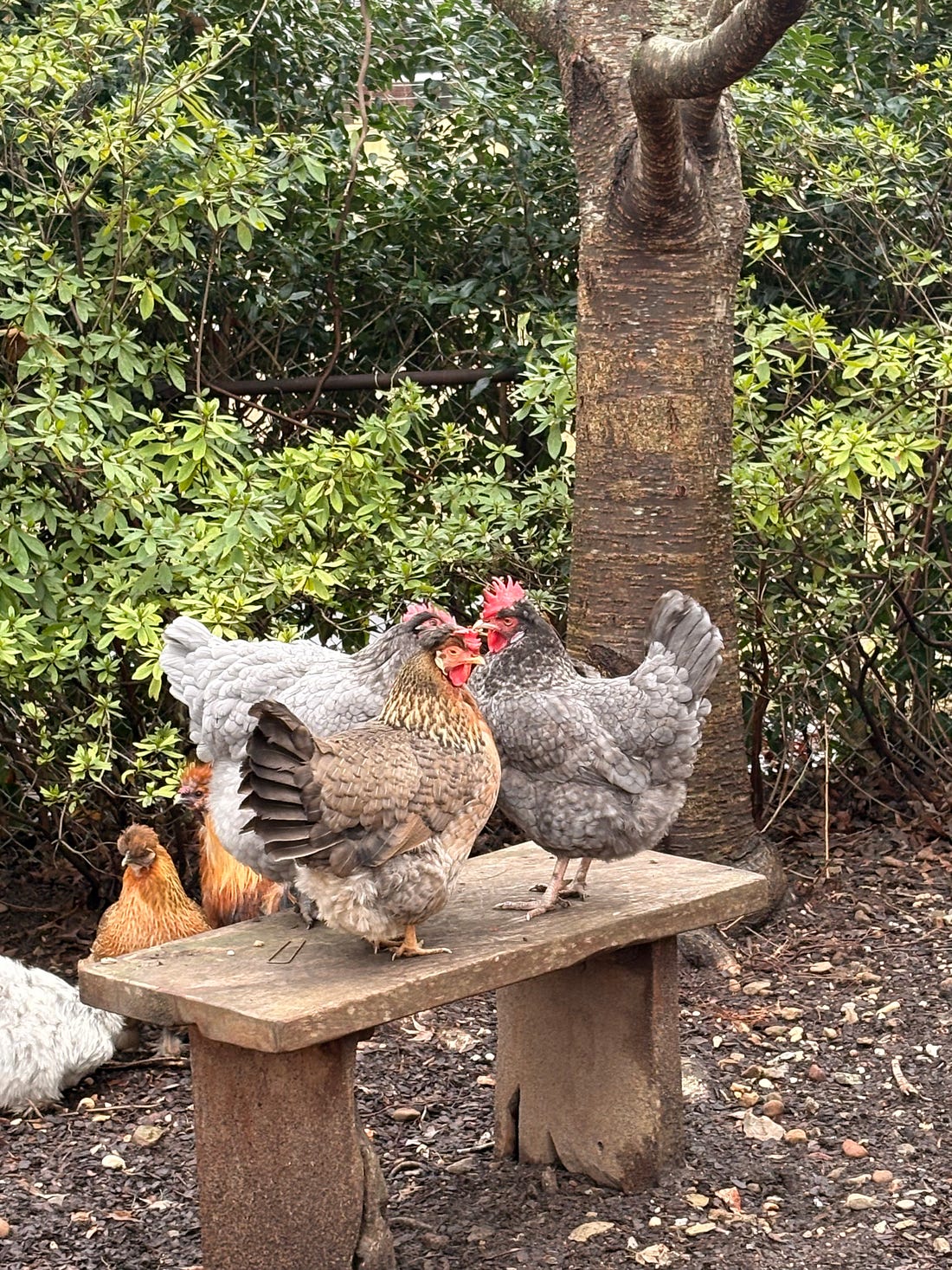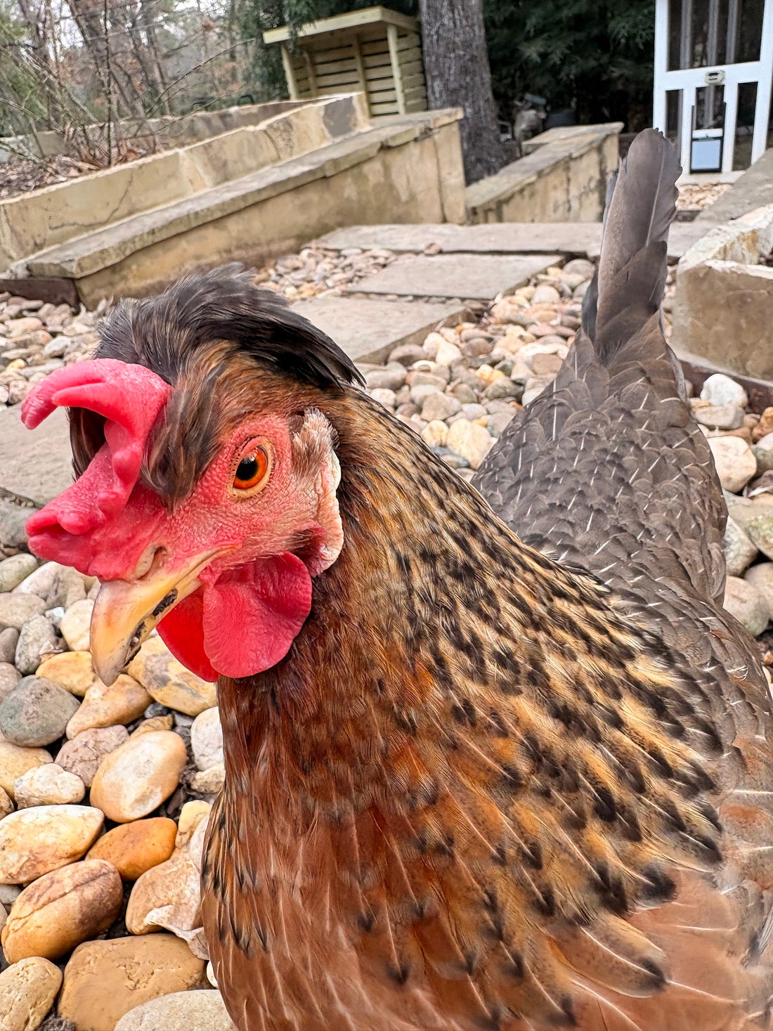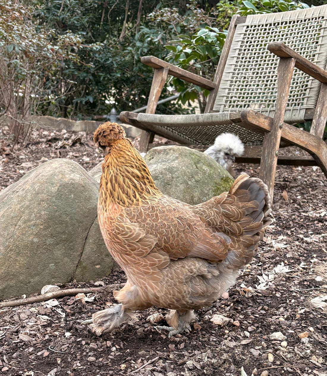 When I saw this picture—that’s me getting ready to do a TV hit—I began to suspect we are probably all at the point where we need a little break. It was after 10 p.m., I looked exactly how you’d expect yourself to look after the kind of weeks we’ve been experiencing. And I’ve been getting a lot of emails and comments on social media asking where the chickens are and how they’re doing. As crazy as it seems, I’ve been too busy to snap pictures of them lately. So, yesterday morning, I spent extra time hanging out with chickens even though it was C-O-L-D outside. And I got rewarded with these charming pictures that I hope you’ll like too. This is the always charming Pickles. It’s pretty barren out there right now, but Esther is one of our smartest chickens and she always manages to come up with something tasty to eat. She found red worms. The other chickens aren’t as resourceful as Esther. But no chicken can withstand the charms of the picnic table, even when it’s only pumpkin seeds. (I promised them croissants next time). Hope this is the moment of zen that you needed! Earlier this week at an Indivisible Charlotte event, one of the hosts told me she and her friends have an “Agenda of Joy” that they pursue. I was intrigued. How are you all dealing with the constant stress? We’re in this together, Joyce You're currently a free subscriber to Civil Discourse with Joyce Vance . For the full experience, upgrade your subscription. |